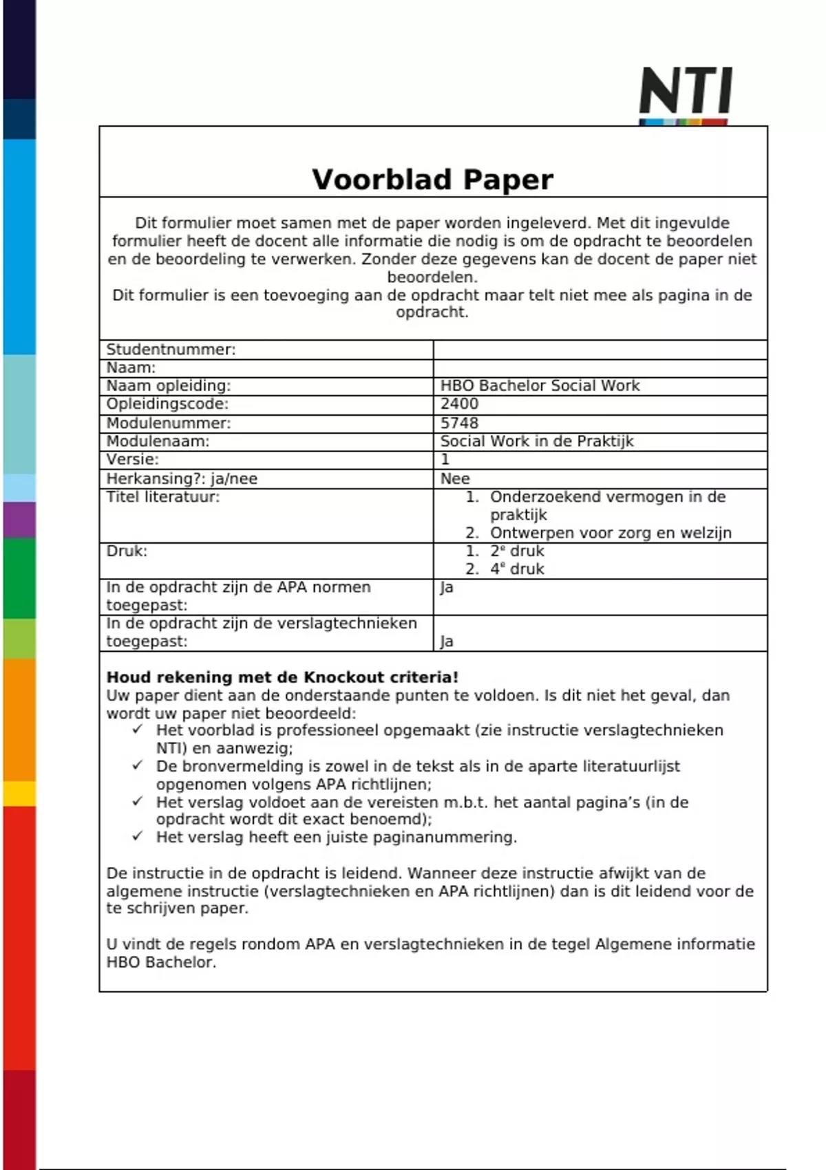Dit formulier moet samen met de paper worden ingeleverd. Met dit ingevulde