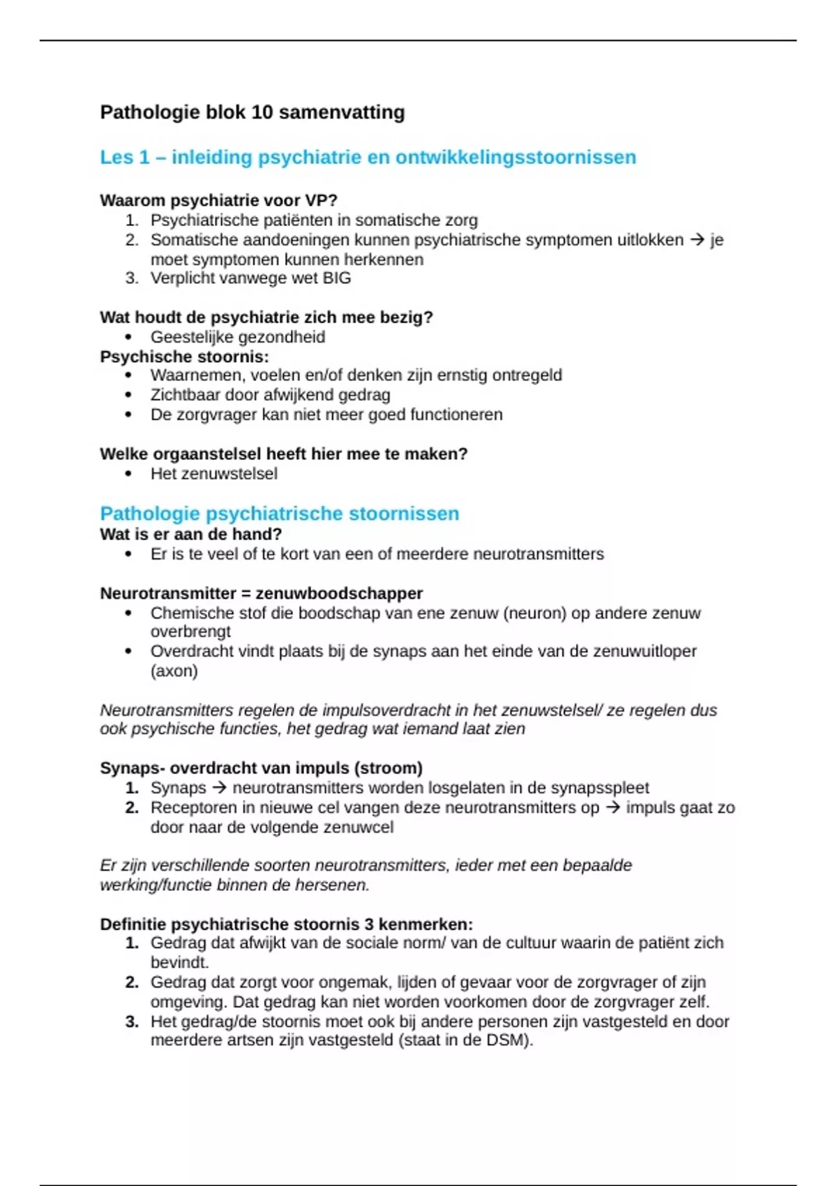 Hierbij een uitgebreiden samenvatting over verschillende ziektes, blok 10