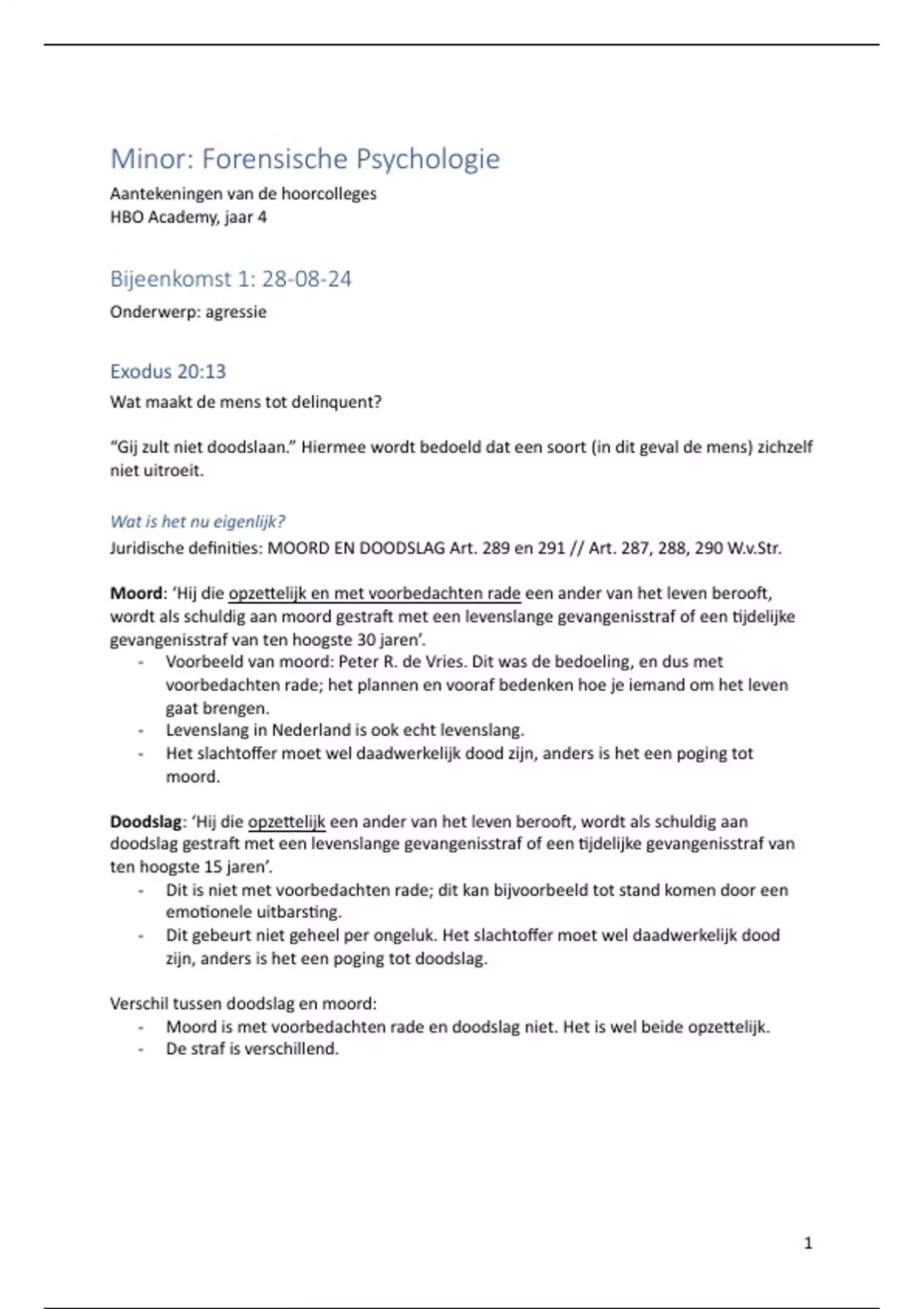Juridische definities: MOORD EN DOODSLAG Art. 289 en 291 // Art. 287, 288, 290 W.v.Str.