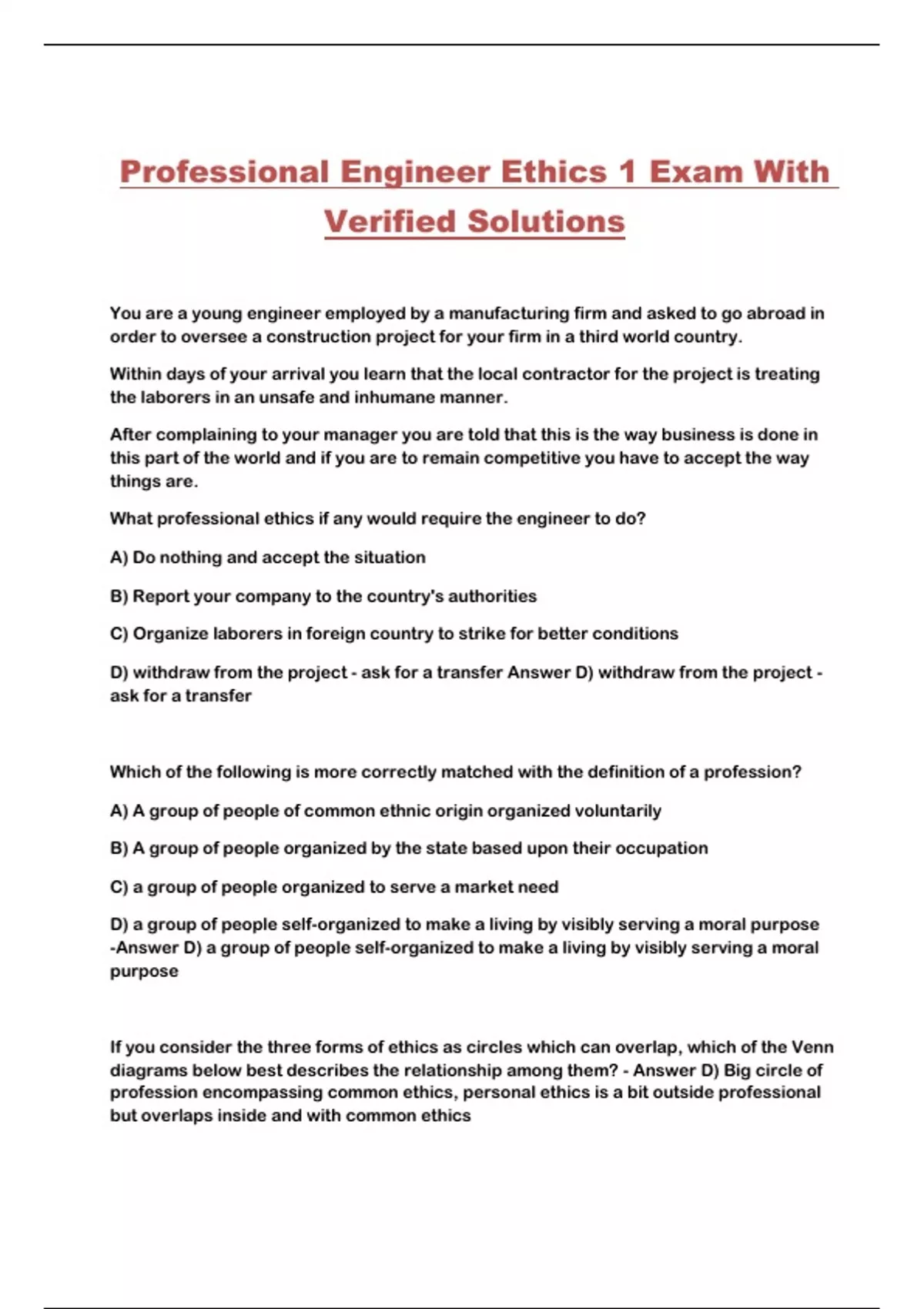Professional Engineer Ethics 1 Exam With Verified Solutions