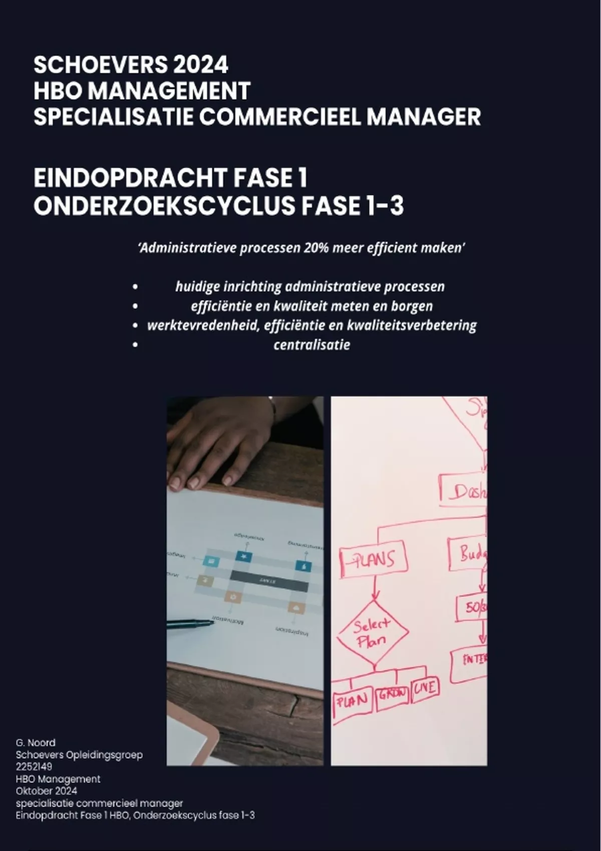 Schoevers HBO Management Eindopdracht fase 1, Onderzoekscyclus 1 - 3, een proces 20% efficienter maken, geslaagd cijfer 8