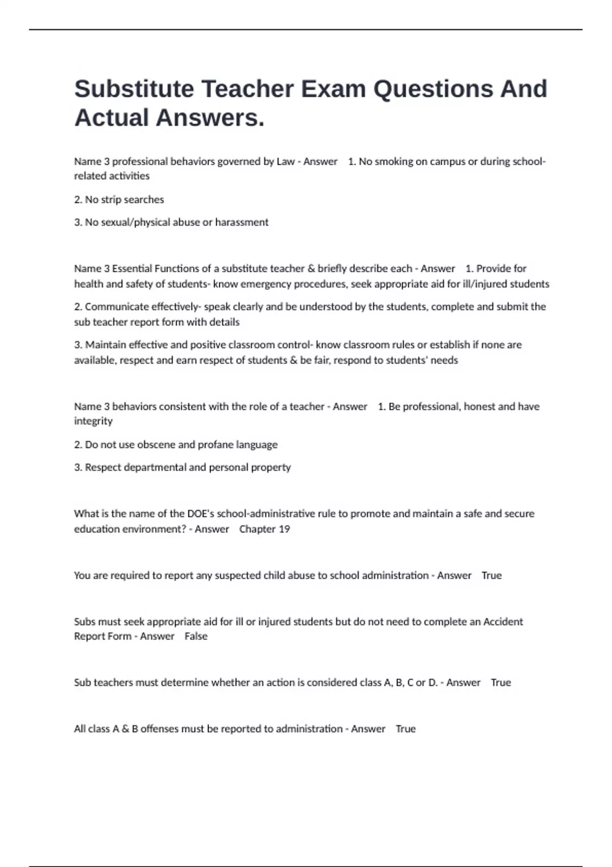 Sub teachers must determine whether an action is considered class A, B, C or D. - Answer True