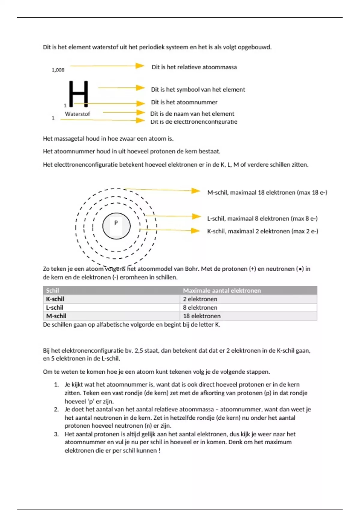 Bij het elektronenconfiguratie bv. 2,5 staat, dan betekent dat dat er 2 elektronen in de K-schil gaan,