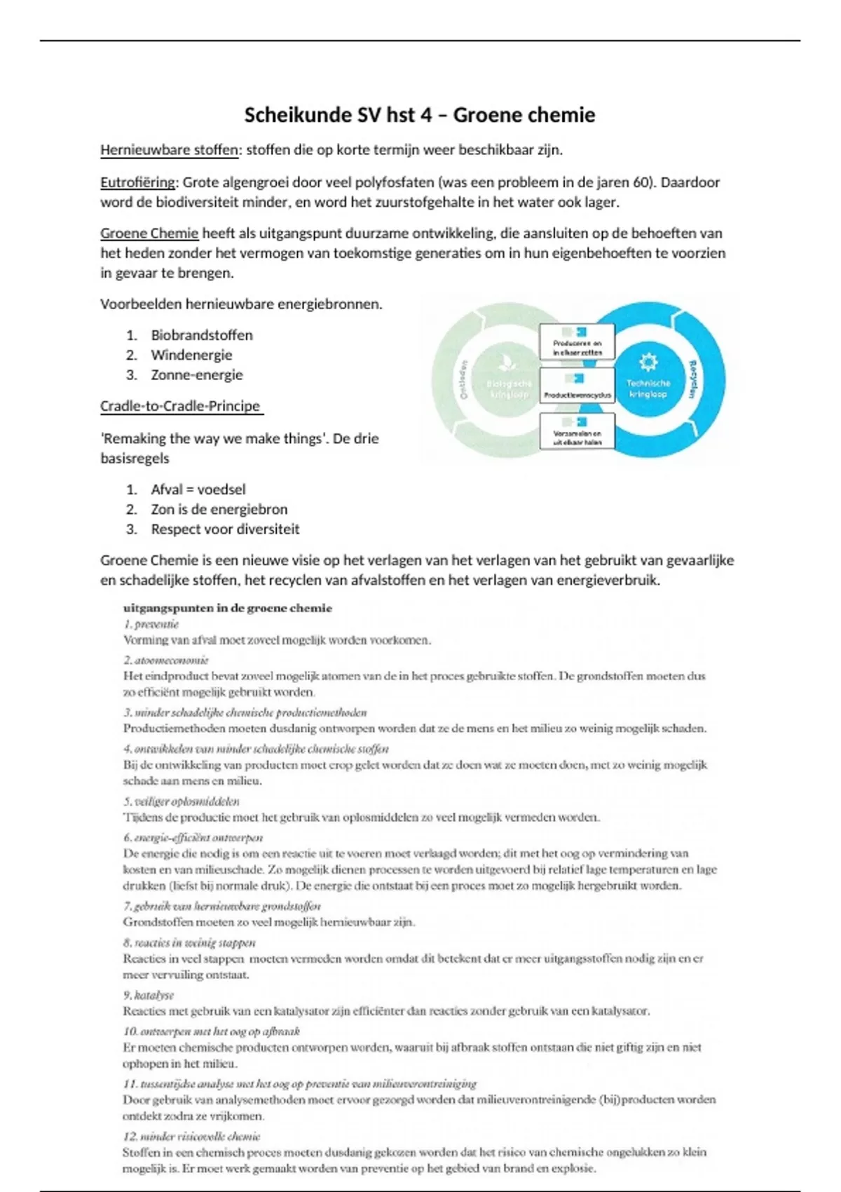 Groene Chemie heeft als uitgangspunt duurzame ontwikkeling, die aansluiten op de behoeften van