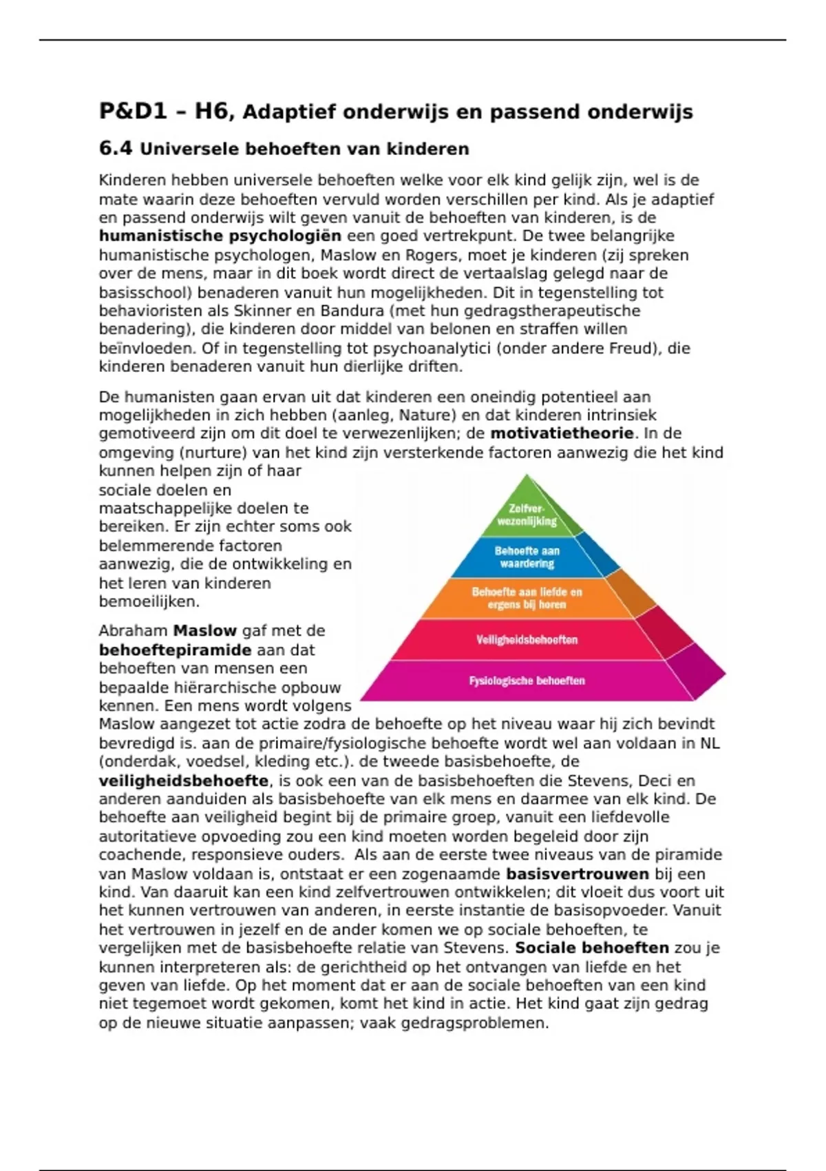P&D1 – H6, Adaptief onderwijs en passend onderwijs