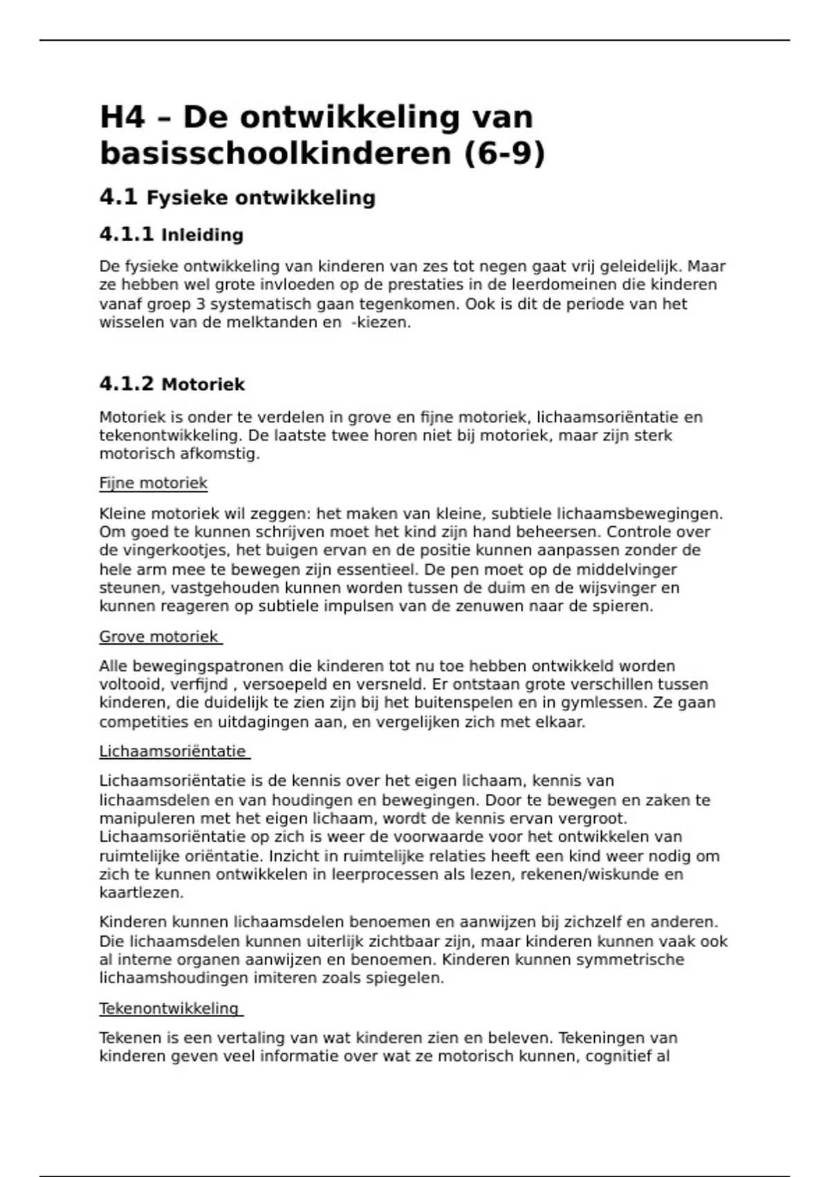tekenontwikkeling. De laatste twee horen niet bij motoriek, maar zijn sterk