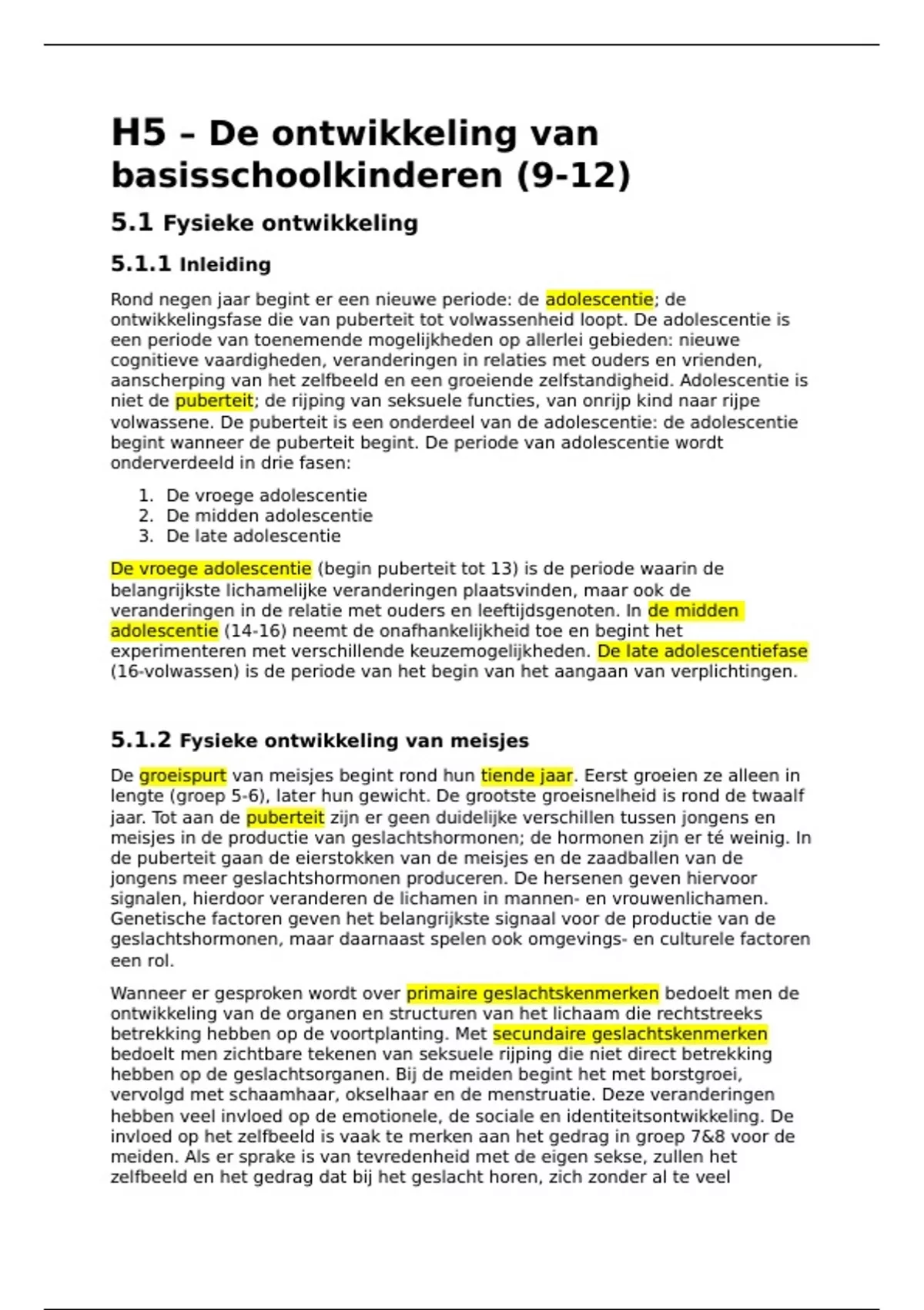 Deze samenvatting bevat alle stof van H5 van het boek ontwikkelingspsychologie. Dit boek is verplicht voor de Pabo en zul je gedurende de hele opleiding nodig hebben. Belangrijke begrippen heb ik dikgedrukt.