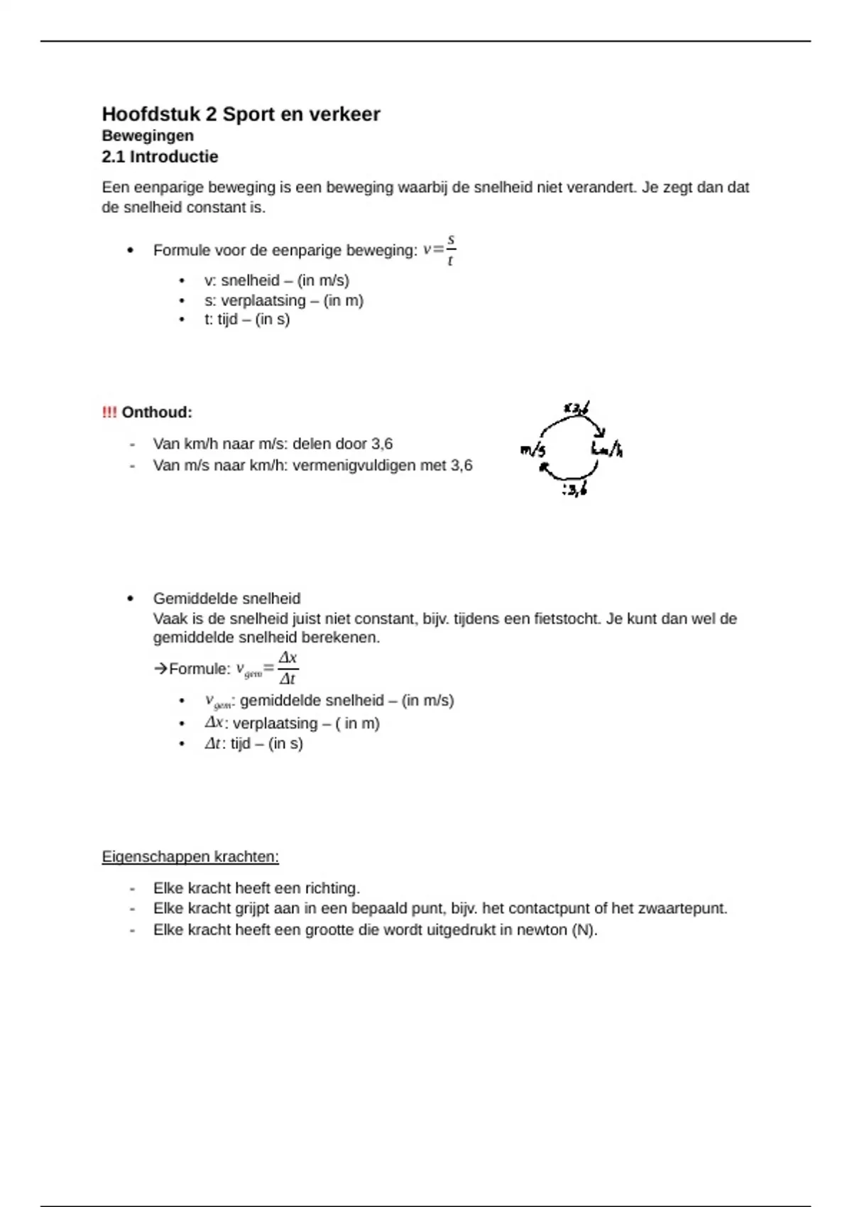 - Van m/s naar km/h: vermenigvuldigen met 3,6