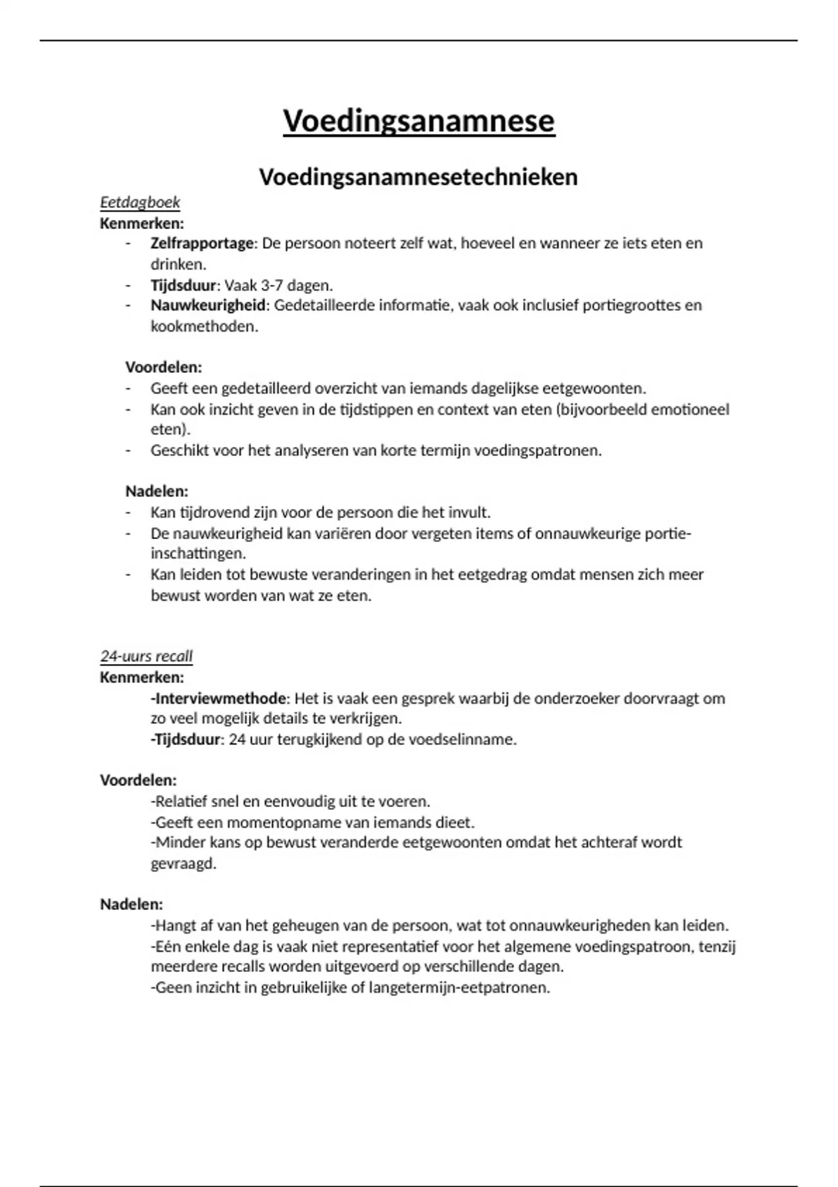 In deze samenvatting alles stof van voedingsanamnese voor het 1e tentamen voeding en diëtetiek op de Haagse Hogeschool.