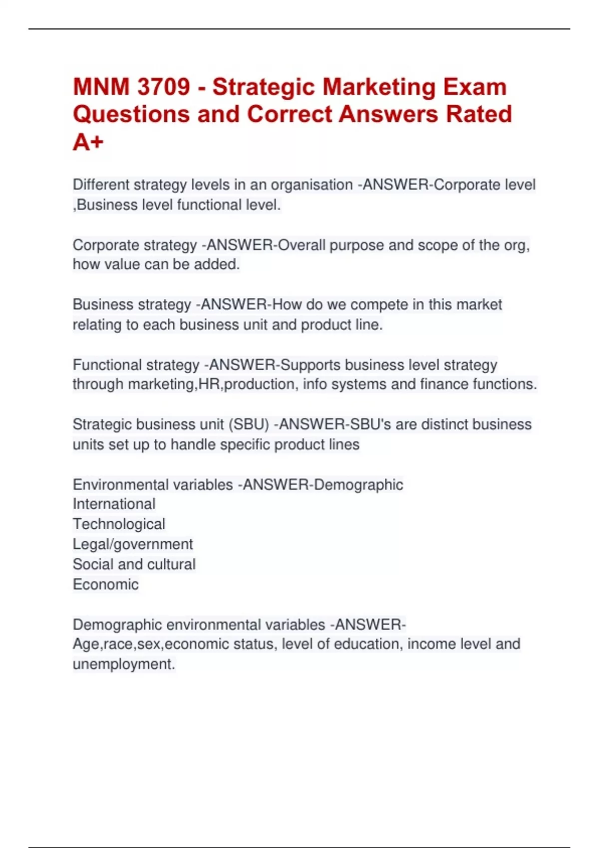 MNM 3709 - Strategic Marketing Exam