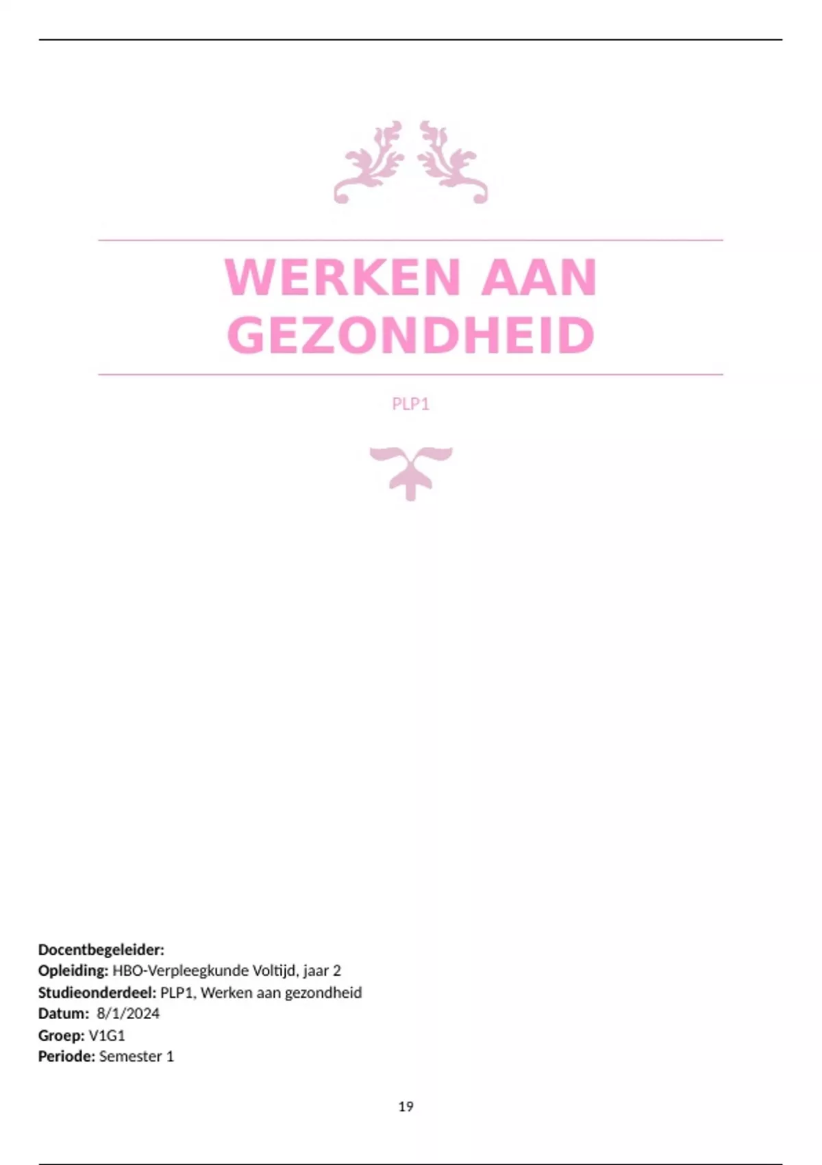 Studieonderdeel: PLP1, Werken aan gezondheid