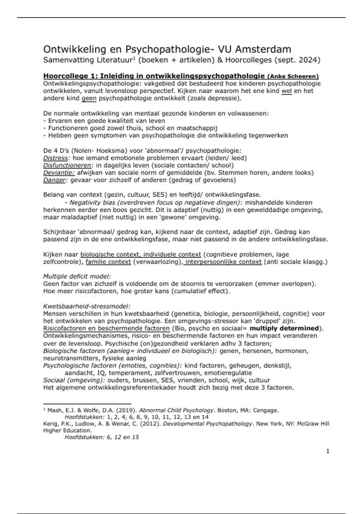 Hoorcollege 1: Inleiding in ontwikkelingspsychopathologie (Anke Scheeren)