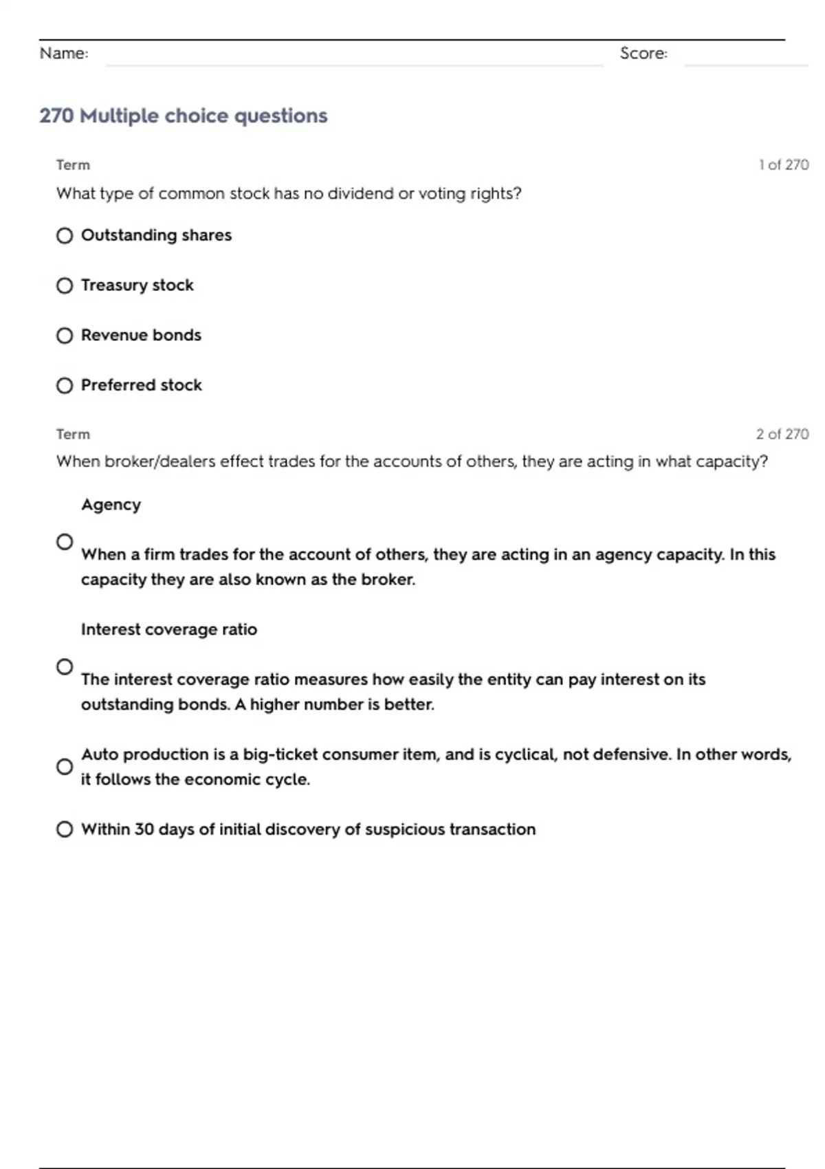270 Multiple choice questions