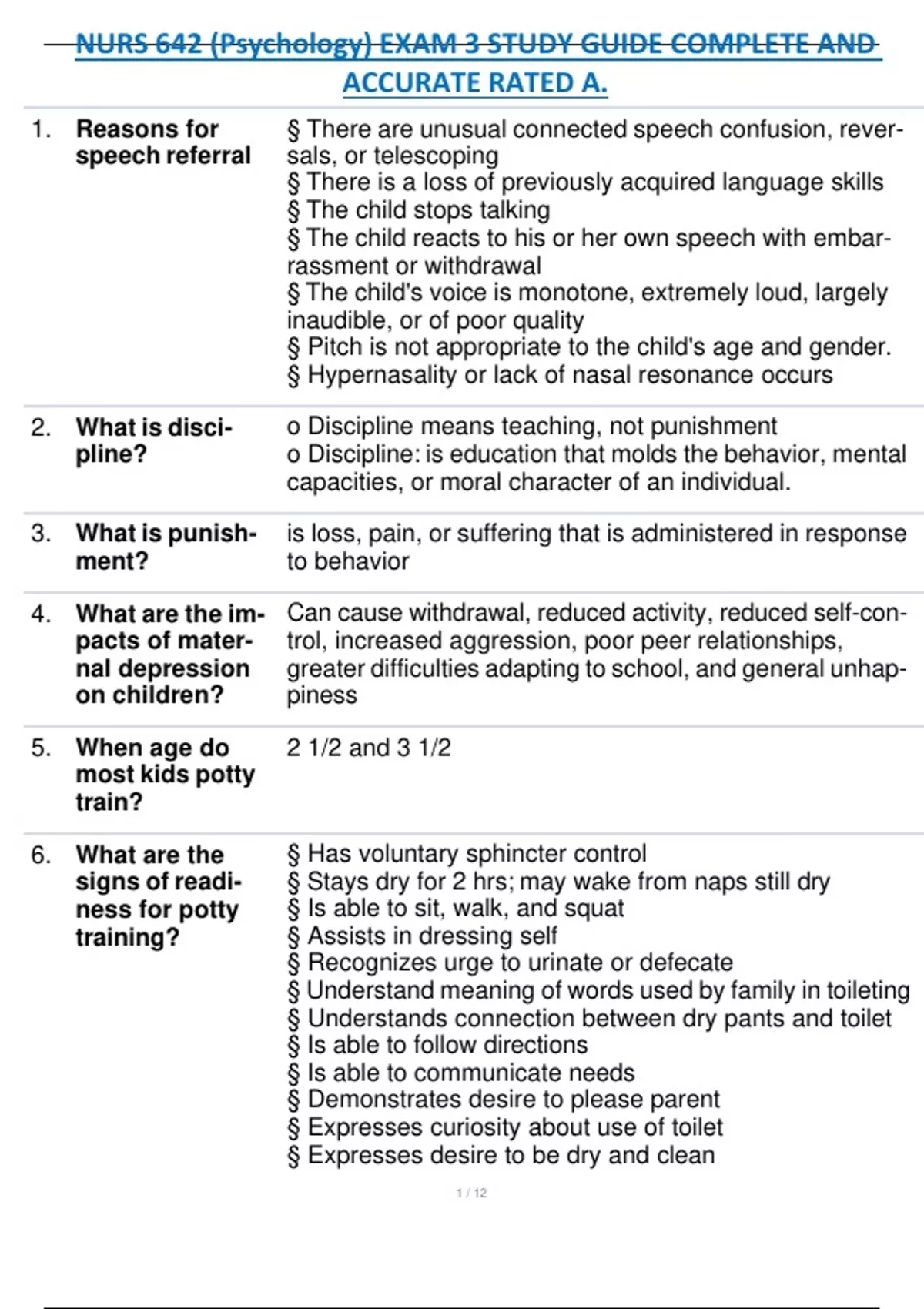 , NURS 642 (Psychology) EXAM 3 STUDY GUIDE COMPLETE AND