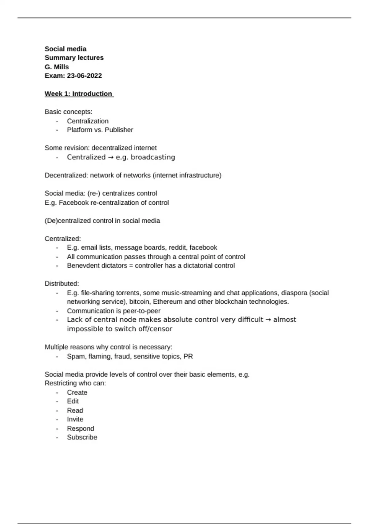 Summary of all lectures for the course Social Media