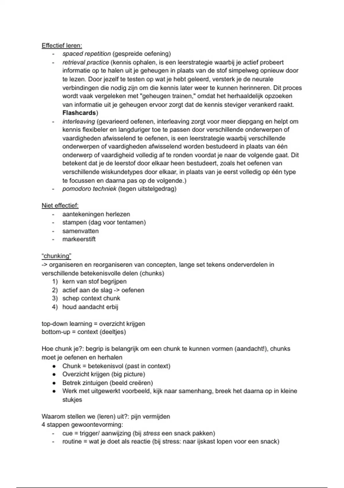 - retrieval practice (kennis ophalen, is een leerstrategie waarbij je actief probeert