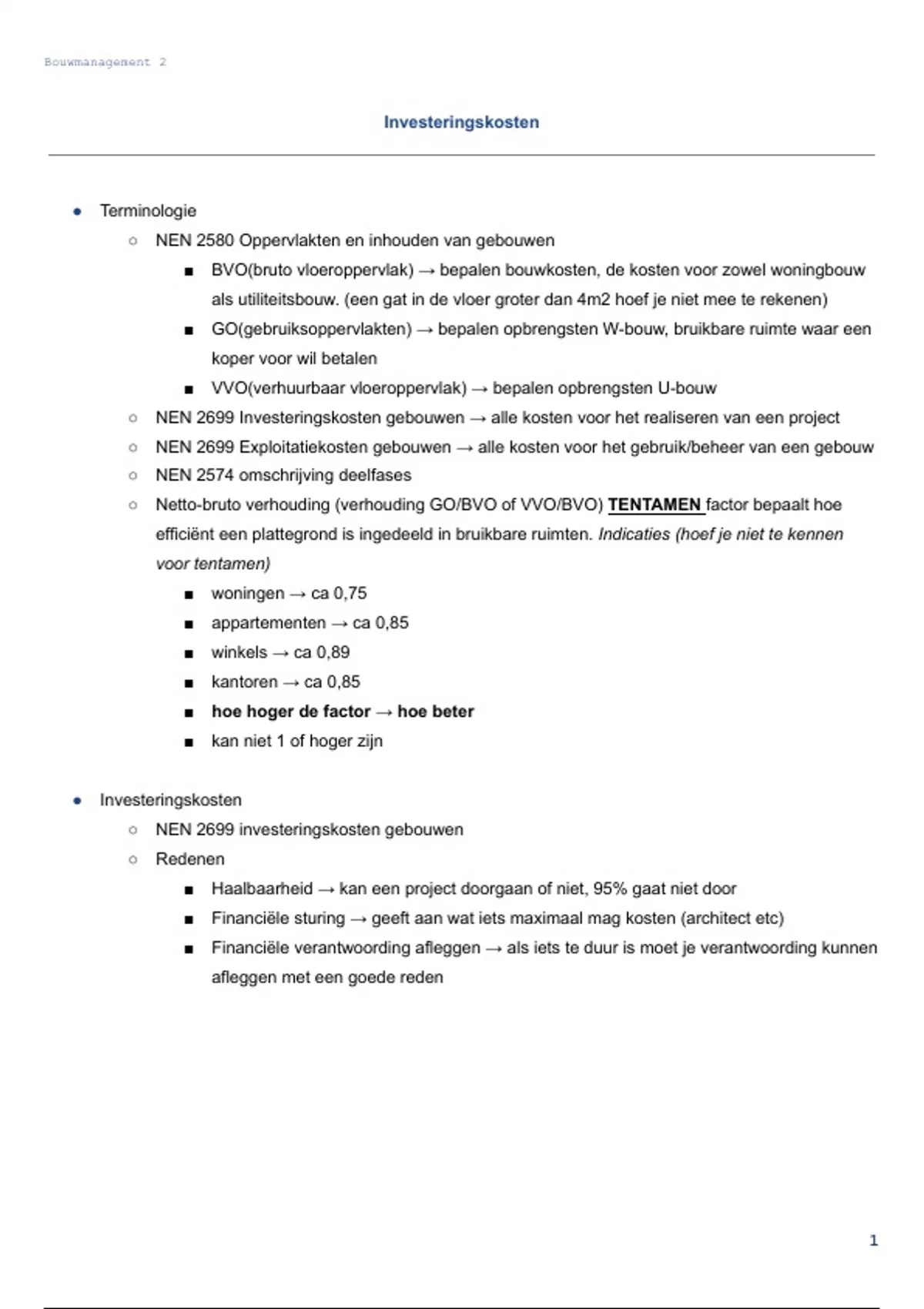 ○ NEN 2699 Investeringskosten gebouwen → alle kosten voor het realiseren van een project