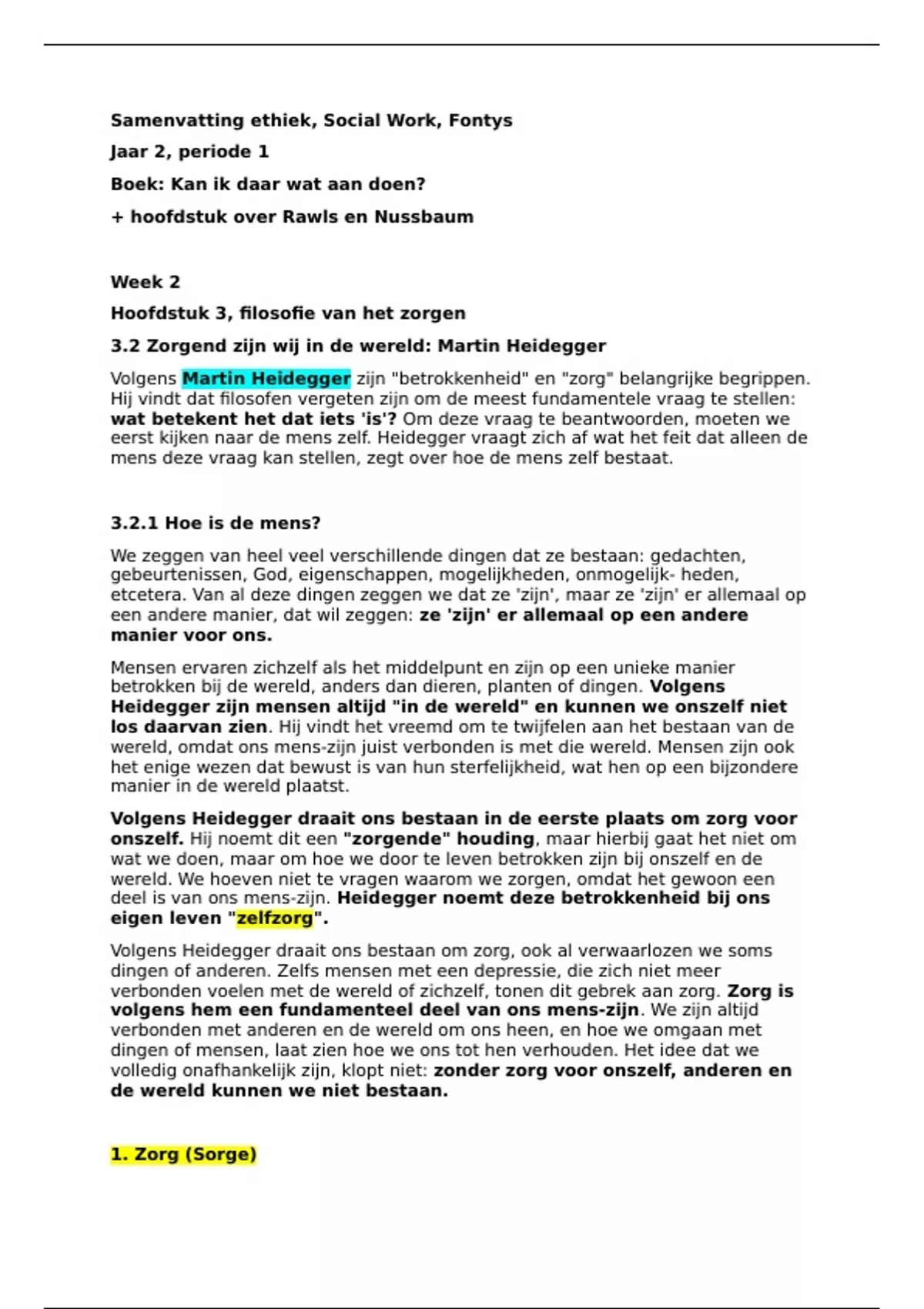 1. Zorg (Sorge)