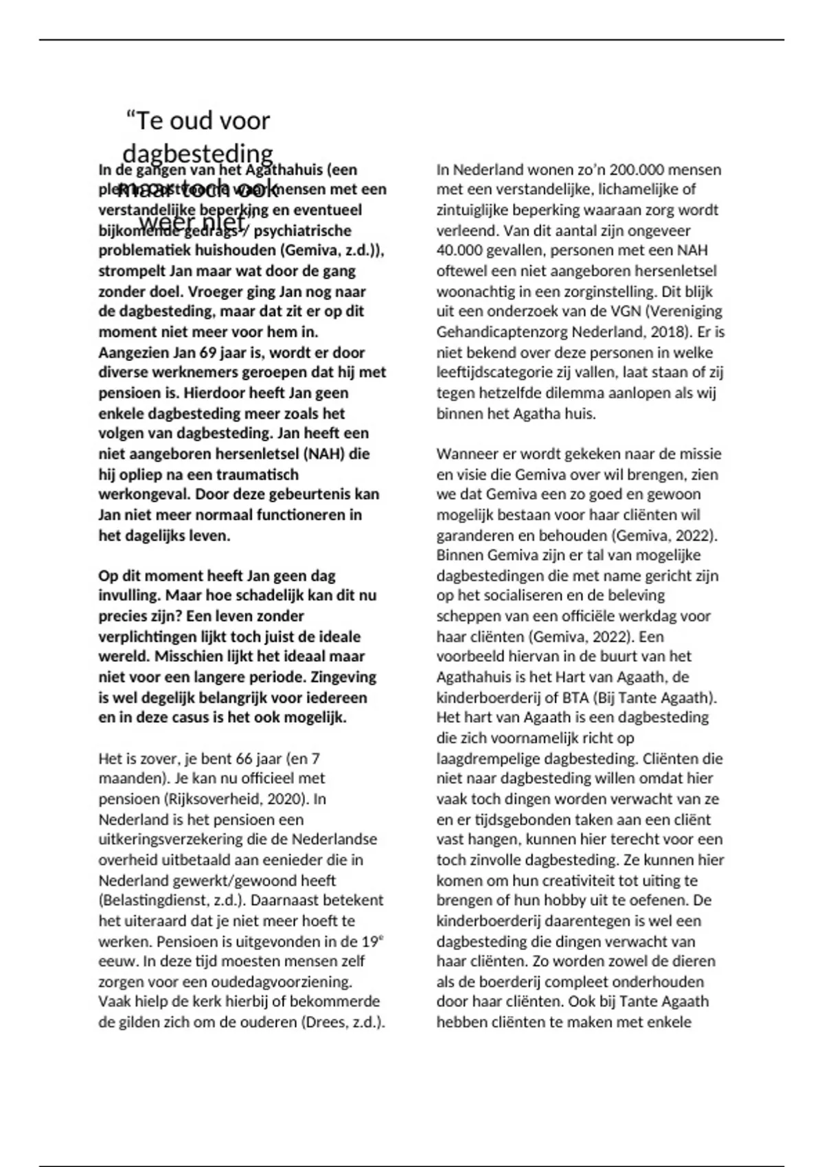pensioen (Rijksoverheid, 2020). In vaak toch dingen worden verwacht van ze