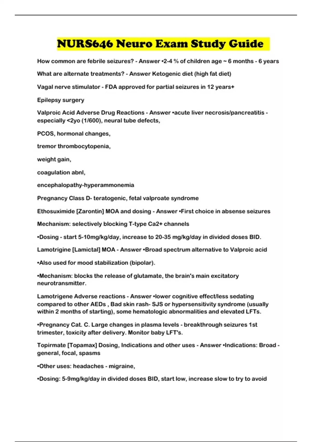 NURS646 Neuro Exam Study Guide
