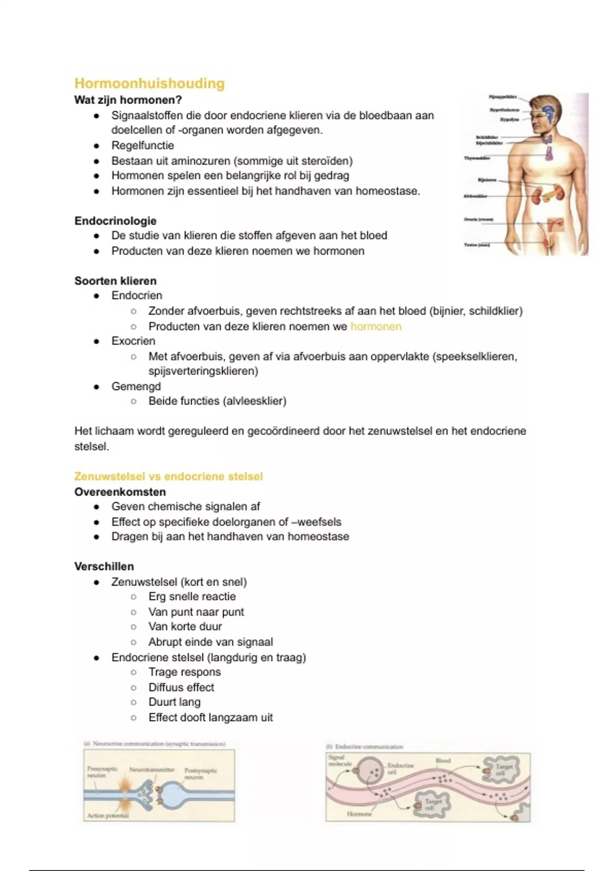 ● Hormonen zijn essentieel bij het handhaven van homeostase.