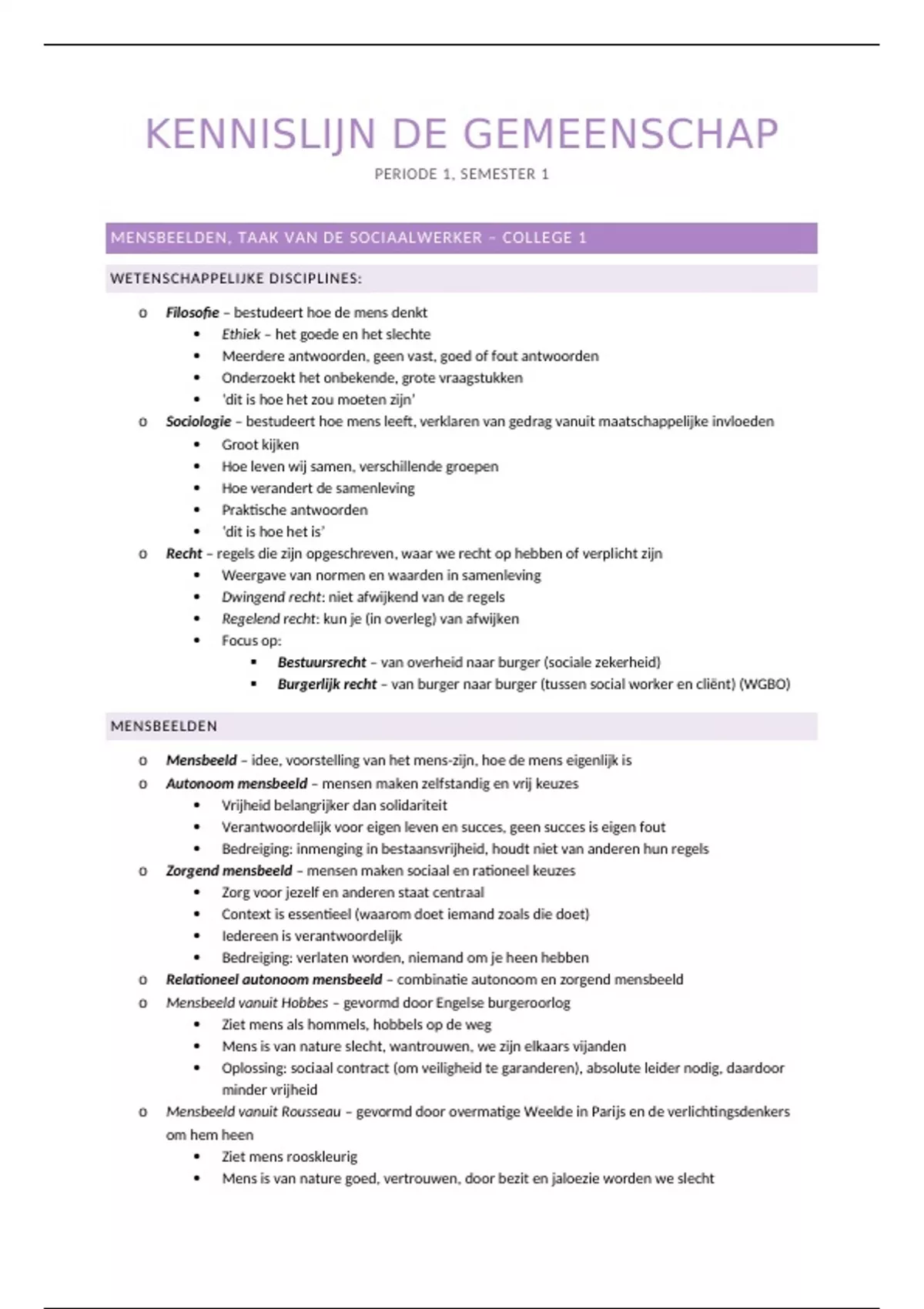 MENSBEELDEN, TAAK VAN DE SOCIAALWERKER – COLLEGE 1