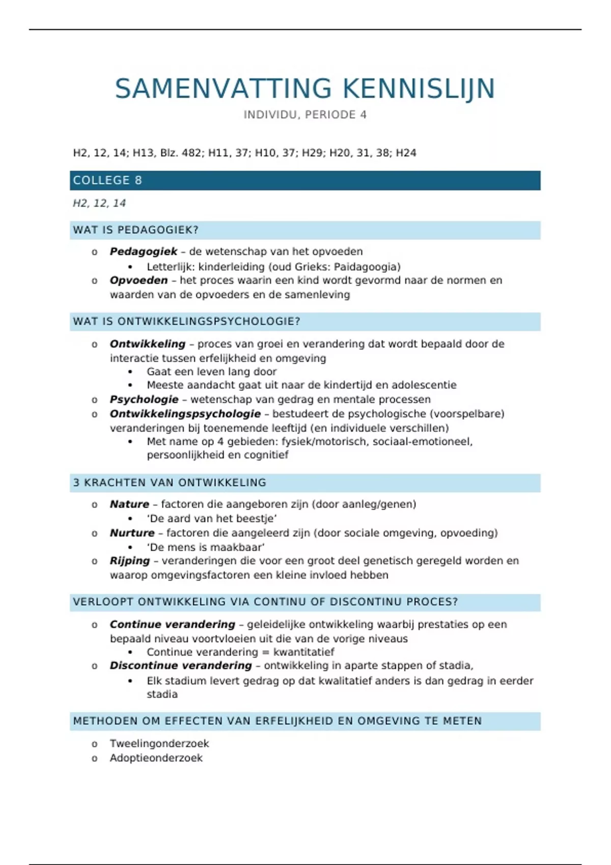 o Ontwikkeling – proces van groei en verandering dat wordt bepaald door de