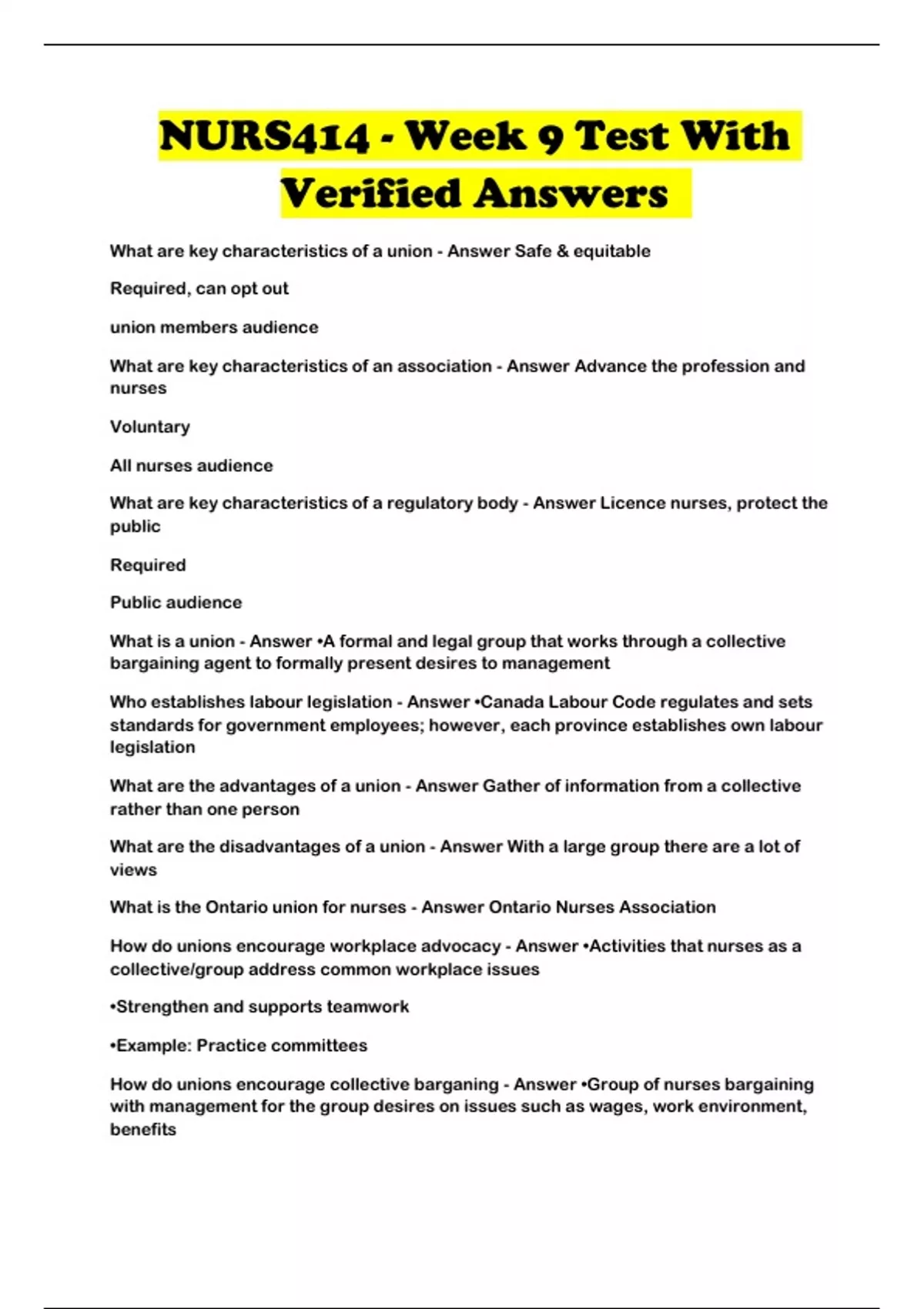 NURS414 - Week 9 Test With