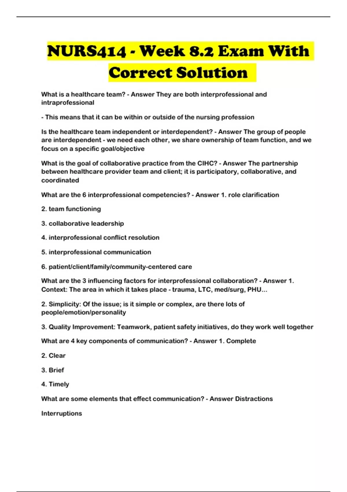 NURS414 - Week 8.2 Exam With