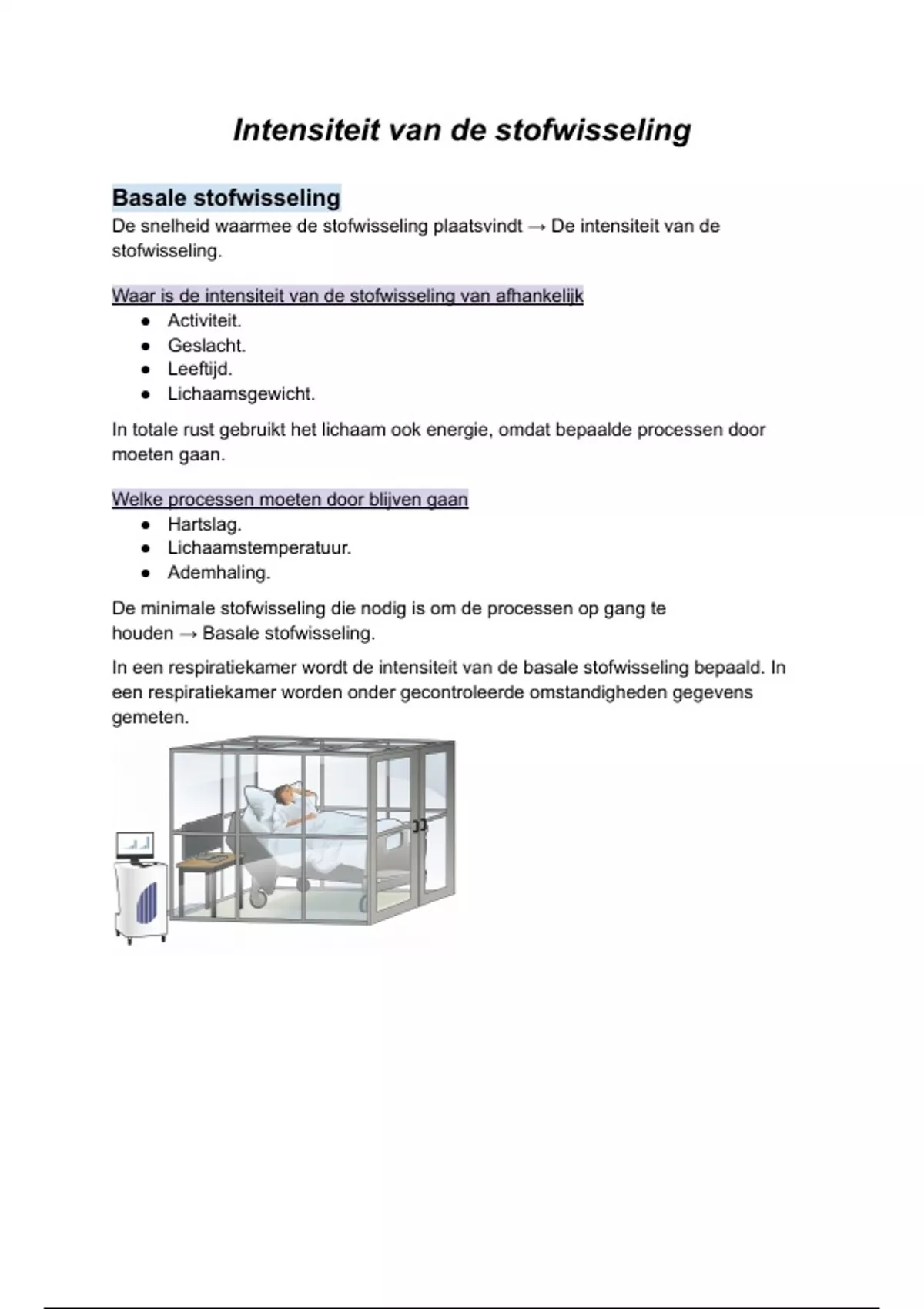 In een respiratiekamer wordt de intensiteit van de basale stofwisseling bepaald. In