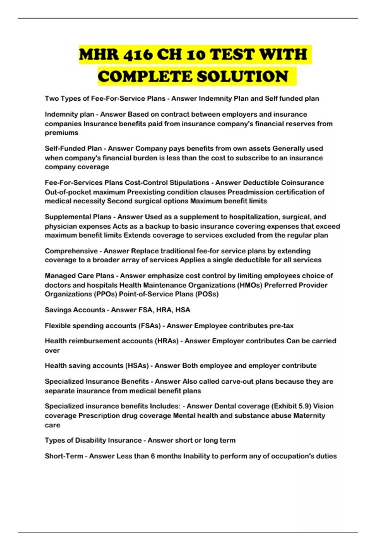 Specialized Insurance Benefits - Answer Also called carve-out plans because they are