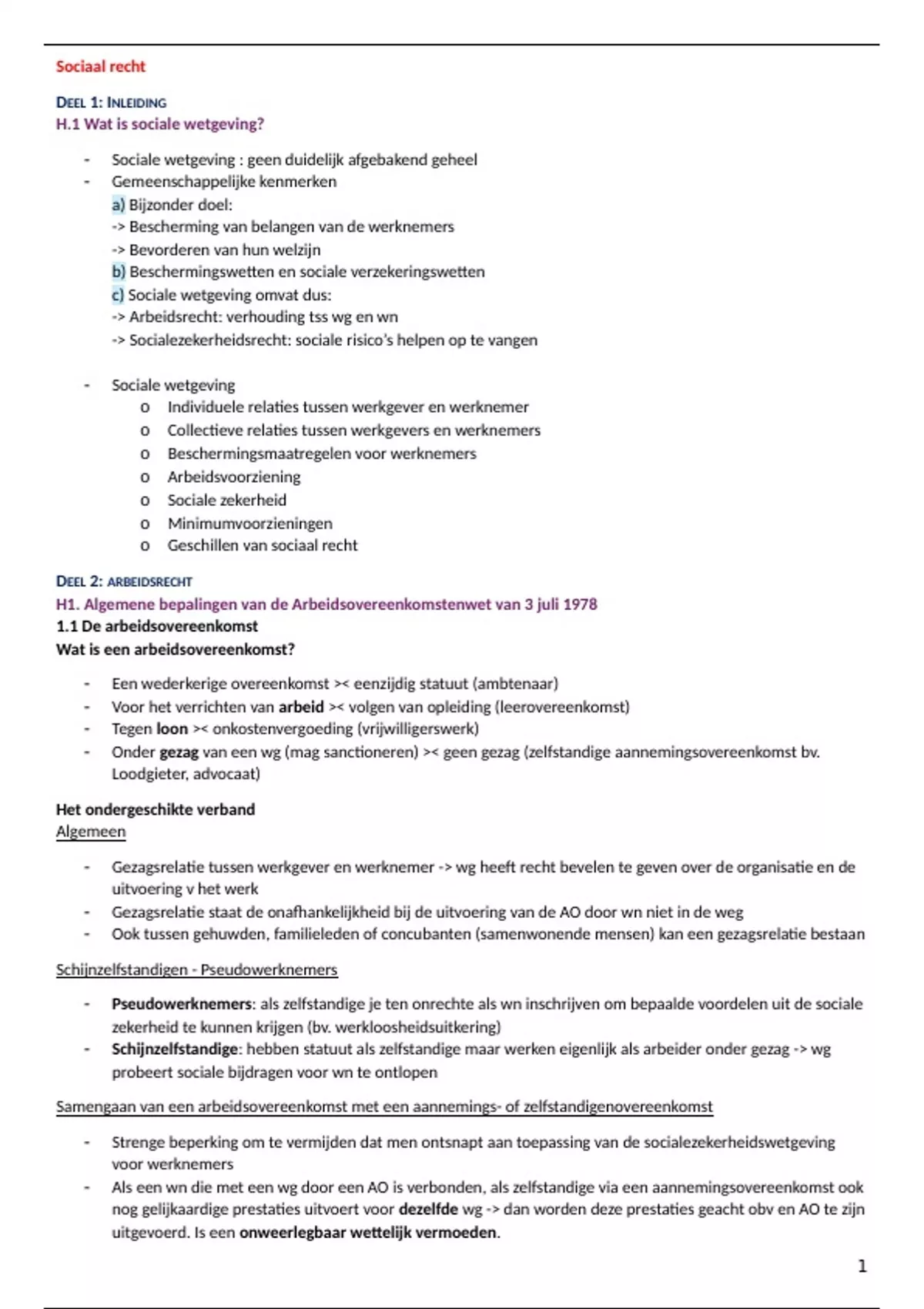 H1. Algemene bepalingen van de Arbeidsovereenkomstenwet van 3 juli 1978