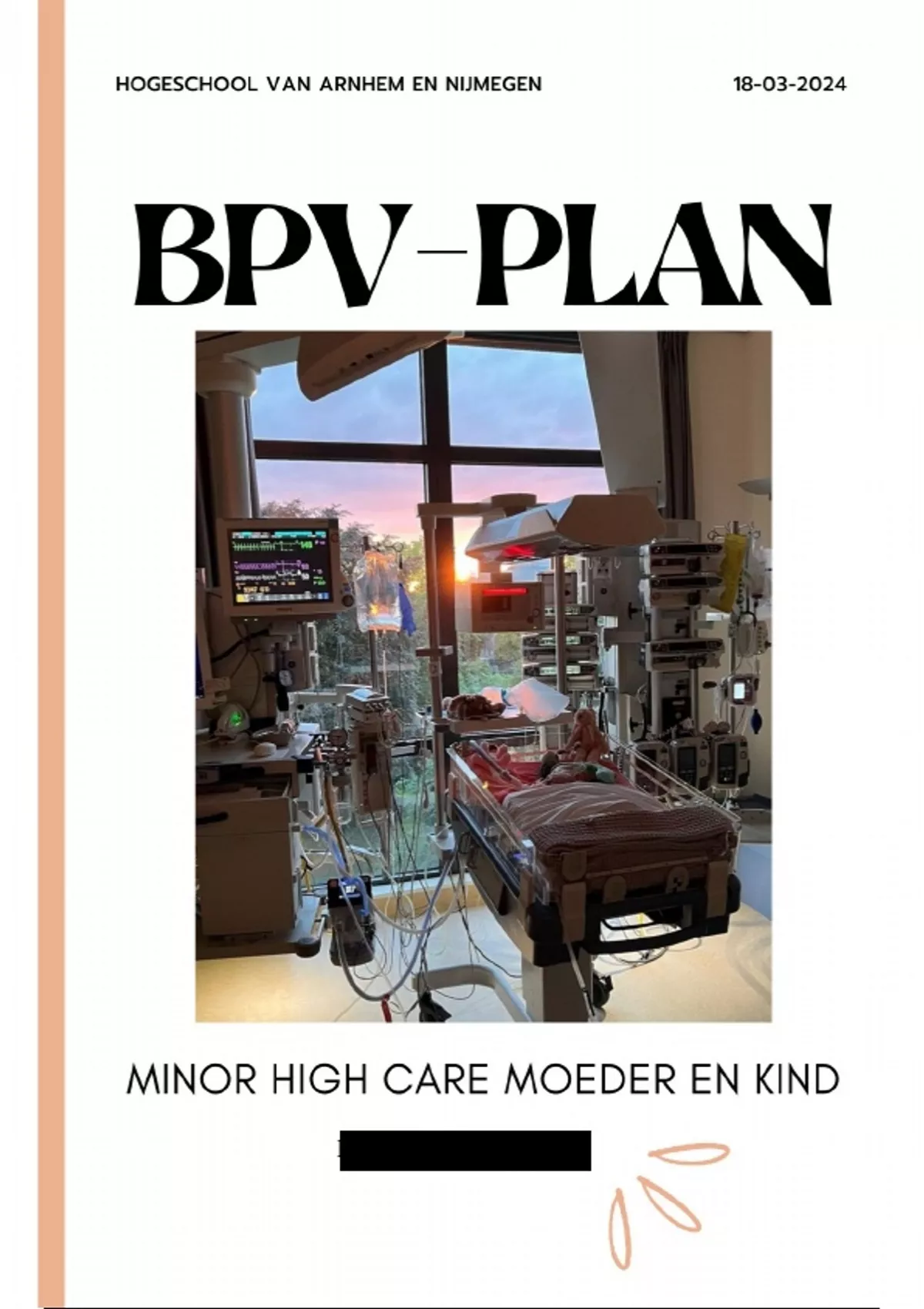 BPV-plan voor stage bij de Minor High Care Moeder en Kind.