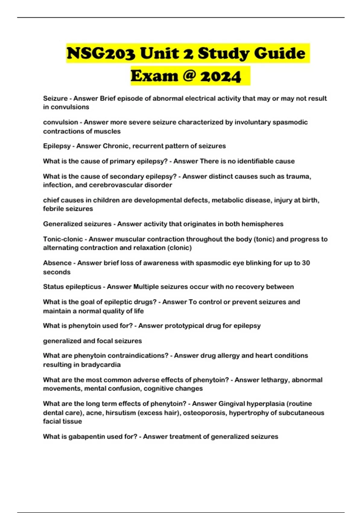 NSG203 Unit 2 Study Guide Exam @ 2024 ...