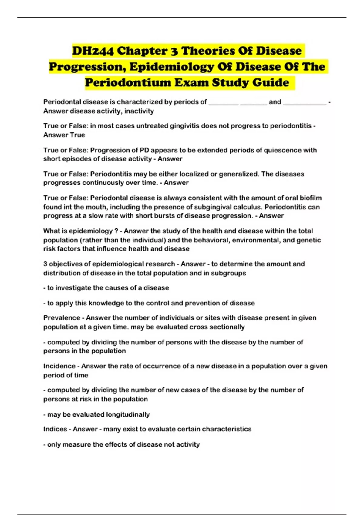 DH244 Chapter 3 Theories Of Disease Progression, Epidemiology Of Disease Of The Periodontium Exam Study Guide ...