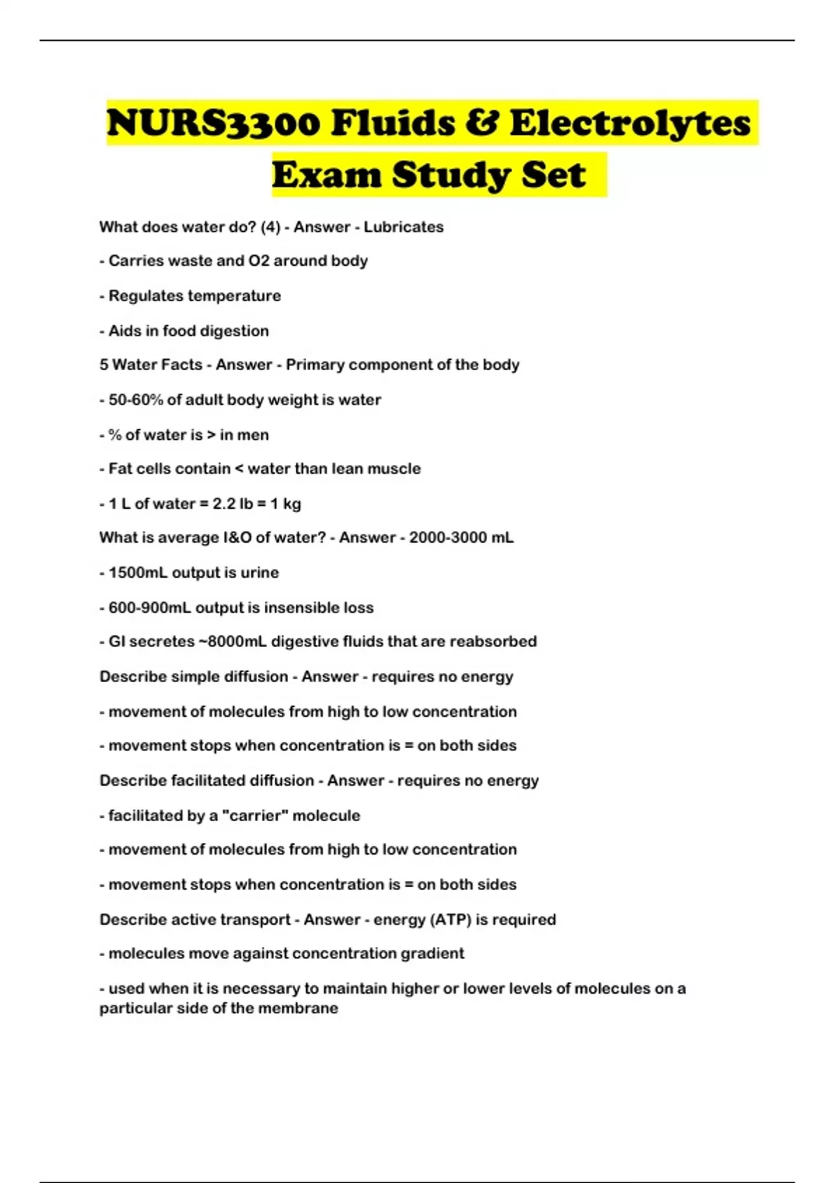 Describe osmosis - Answer - movement of water from a less concentrated compartment