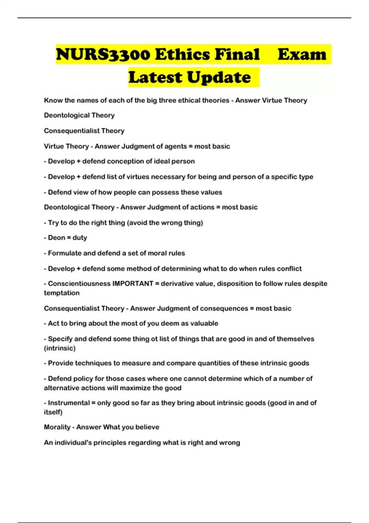 Know the names of each of the big three ethical theories - Answer Virtue Theory