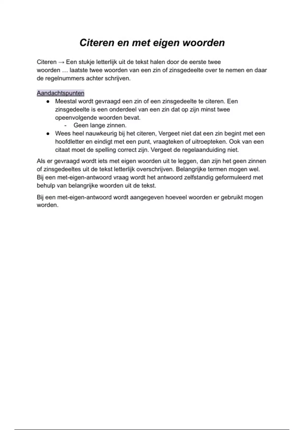 ● Meestal wordt gevraagd een zin of een zinsgedeelte te citeren. Een