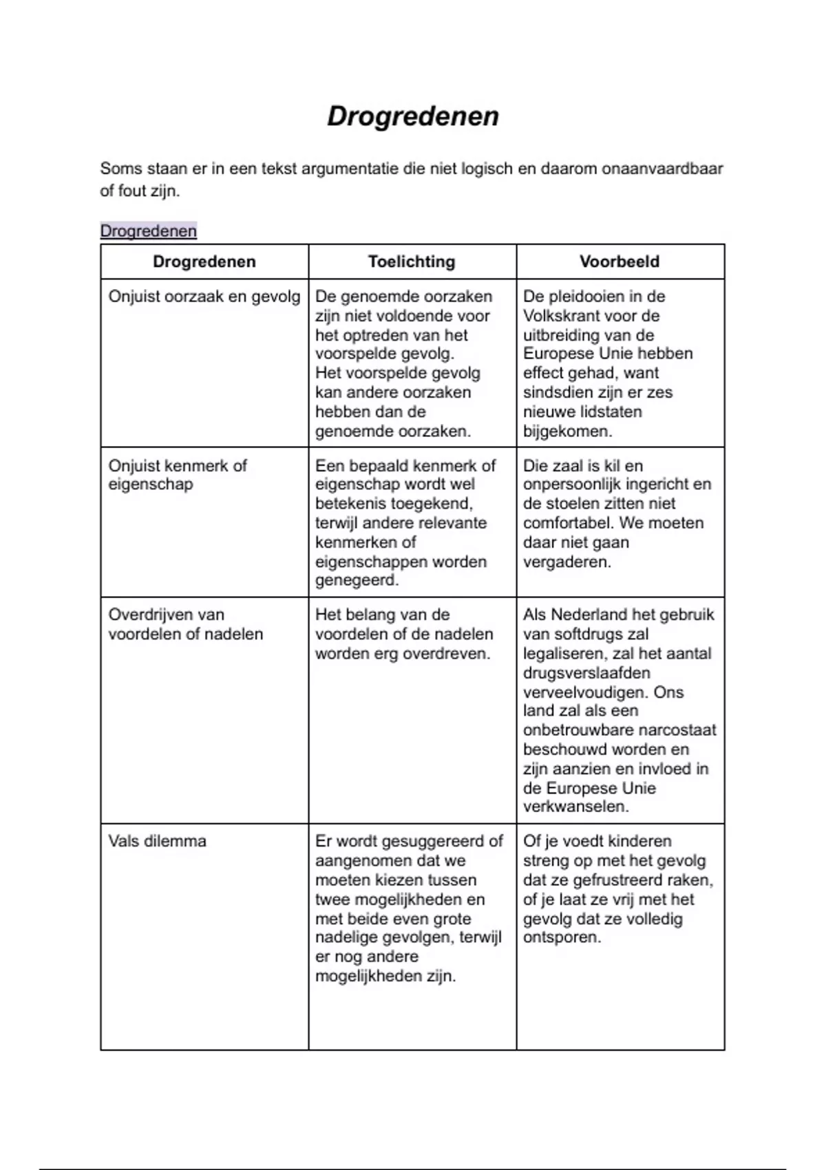 Drogredenen Toelichting Voorbeeld