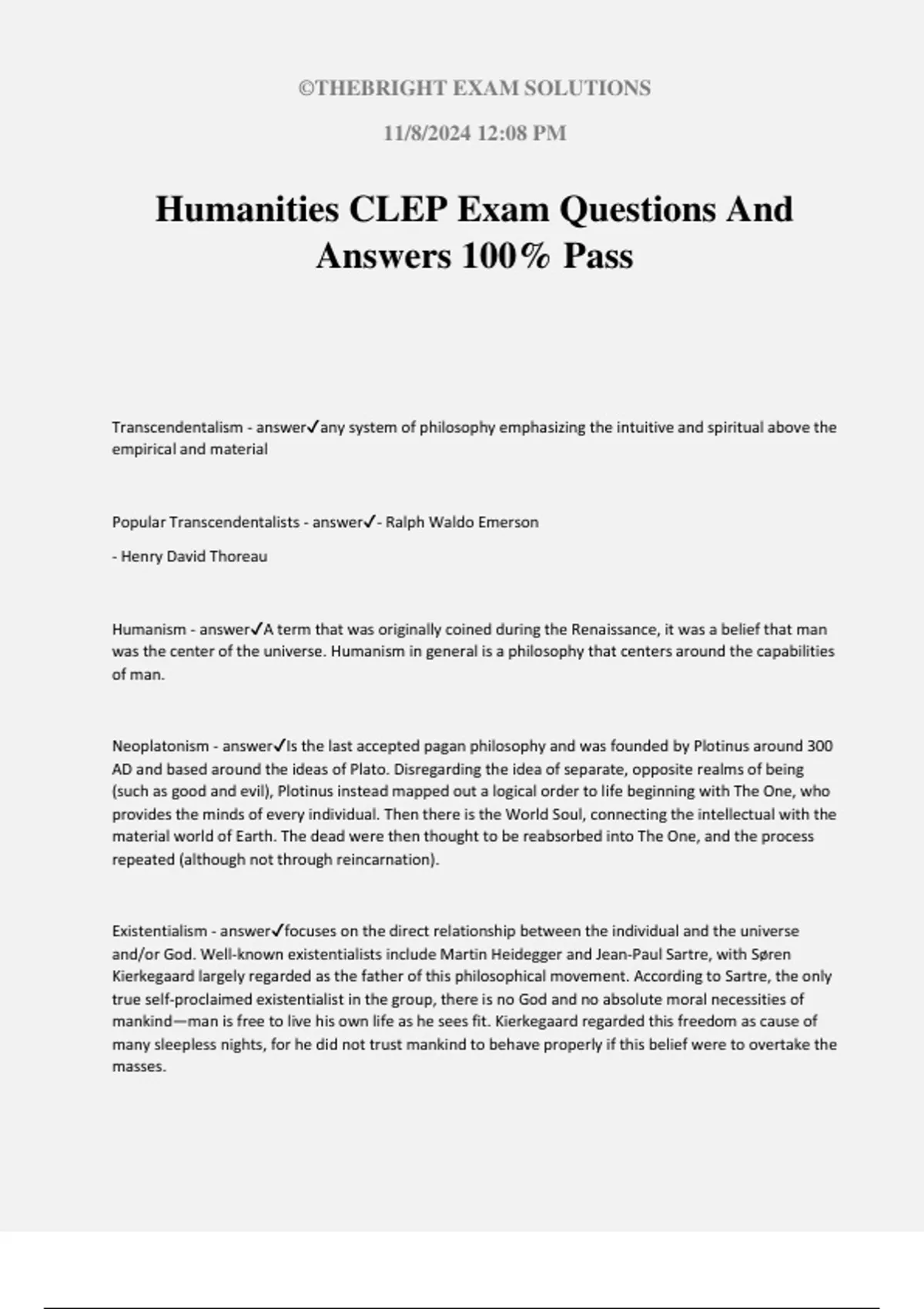 Humanities CLEP Exam Questions And