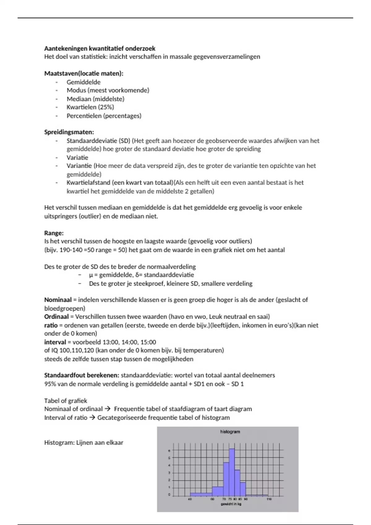 - Standaarddeviatie (SD) (Het geeft aan hoezeer de geobserveerde waardes afwijken van het