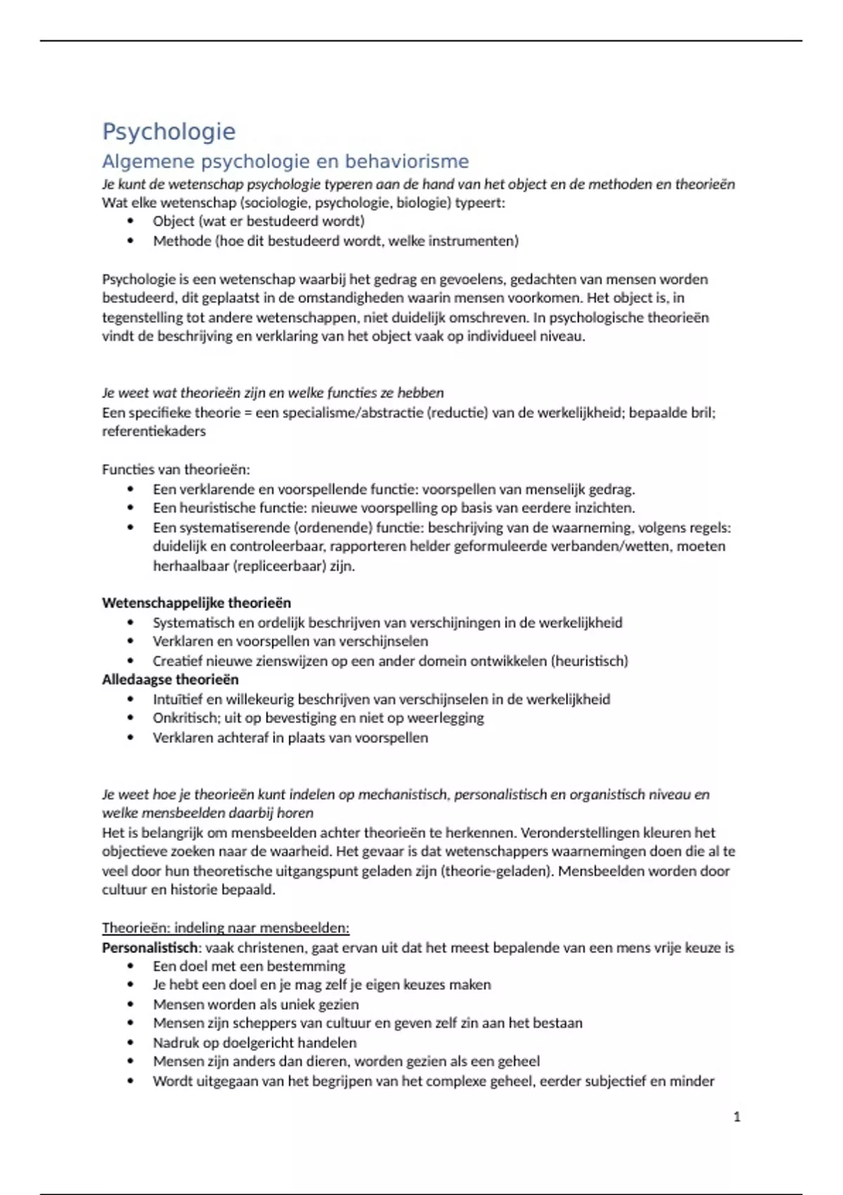 Je weet hoe je theorieën kunt indelen op mechanistisch, personalistisch en organistisch niveau en