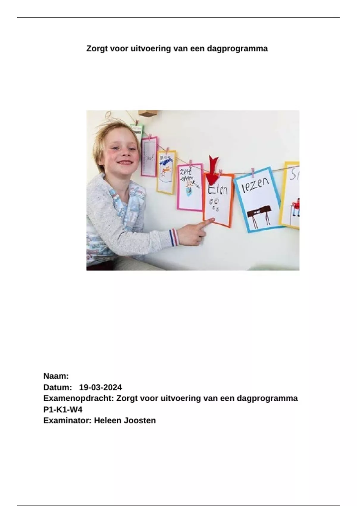 Examen Zorgt voor uitvoering van een dagprogramma P1-K1-W4