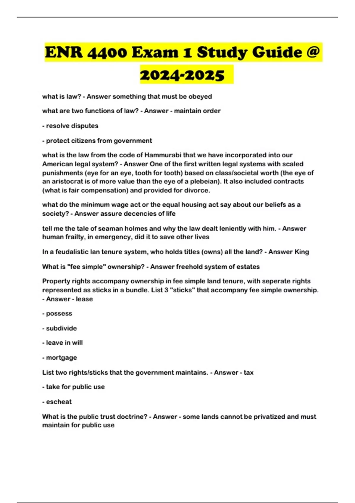 ENR 4400 Exam 1 Study Guide @ ...