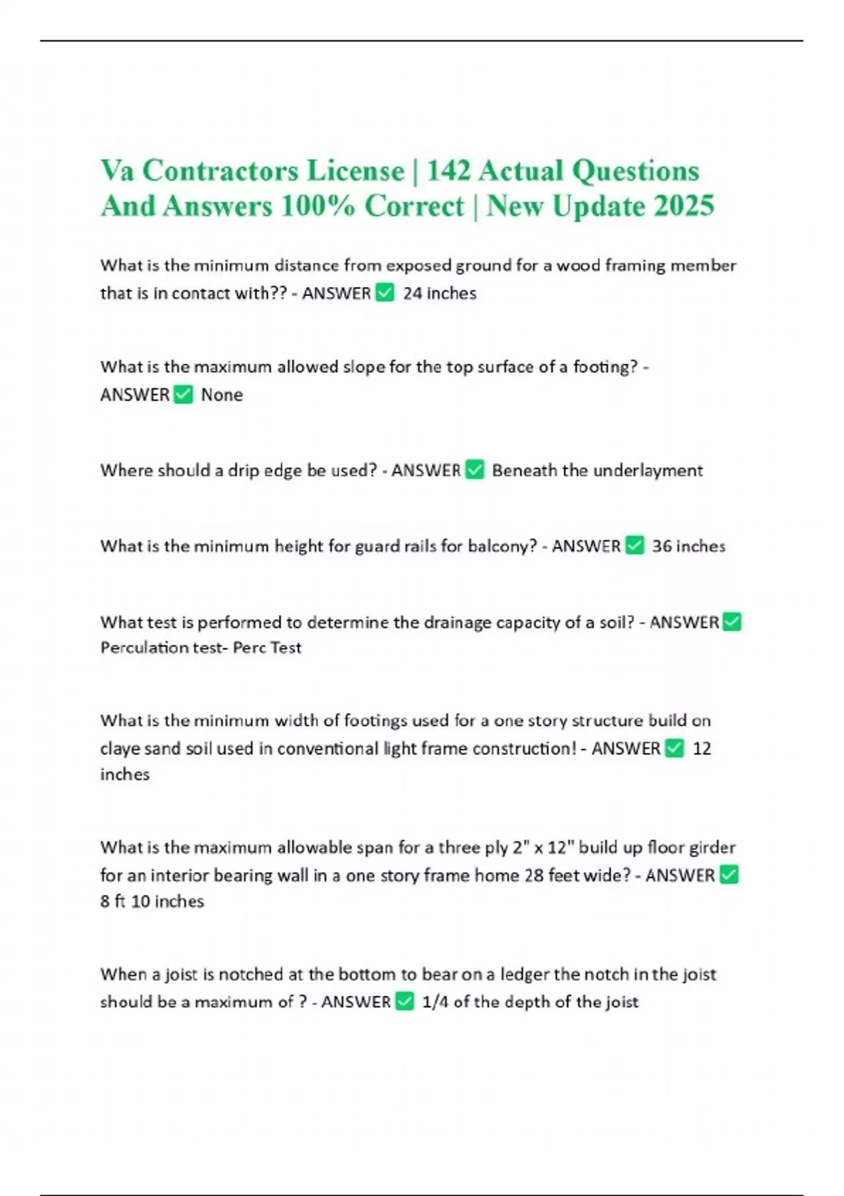 Va Contractors License | 142 Actual Questions And Answers 100% Correct | New Update 2025