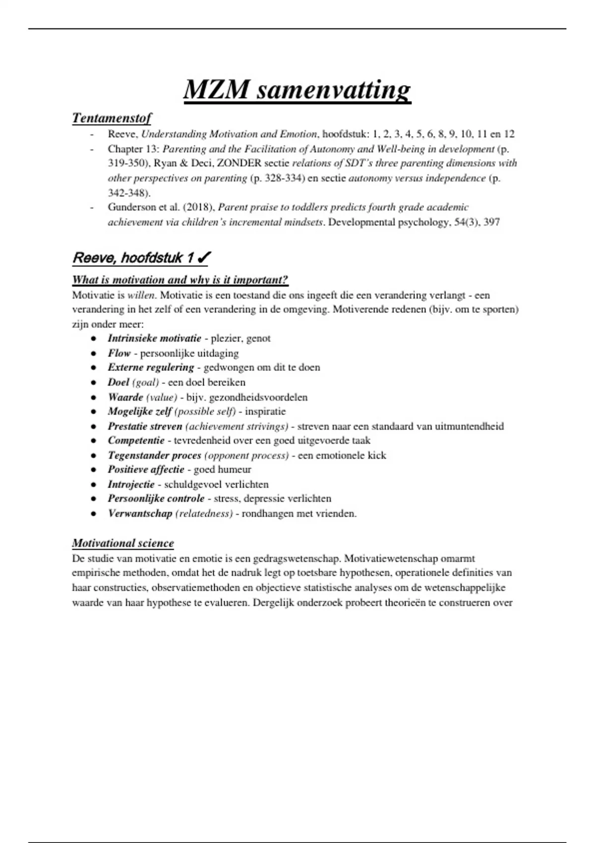 - Reeve, Understanding Motivation and Emotion, hoofdstuk: 1, 2, 3, 4, 5, 6, 8, 9, 10, 11 en 12