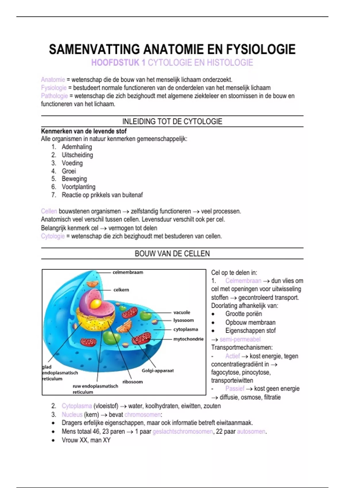 HOOFDSTUK 1 CYTOLOGIE EN HISTOLOGIE