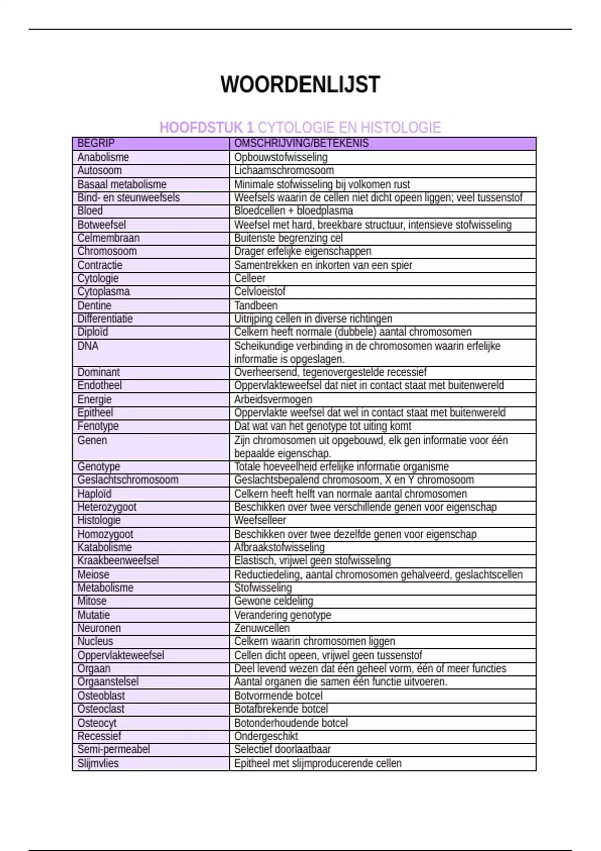 HOOFDSTUK 1 CYTOLOGIE EN HISTOLOGIE