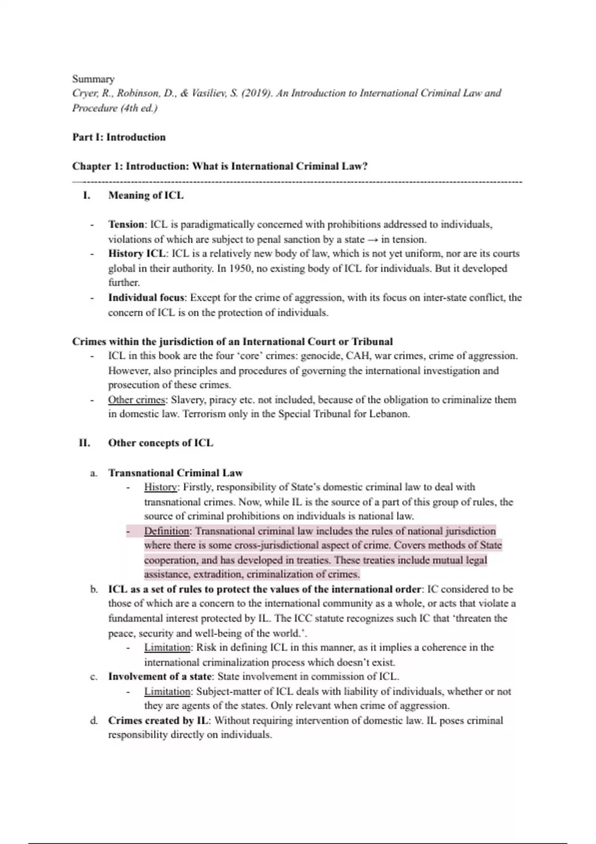 - ICL in this book are the four ‘core’ crimes: genocide, CAH, war crimes, crime of aggression.