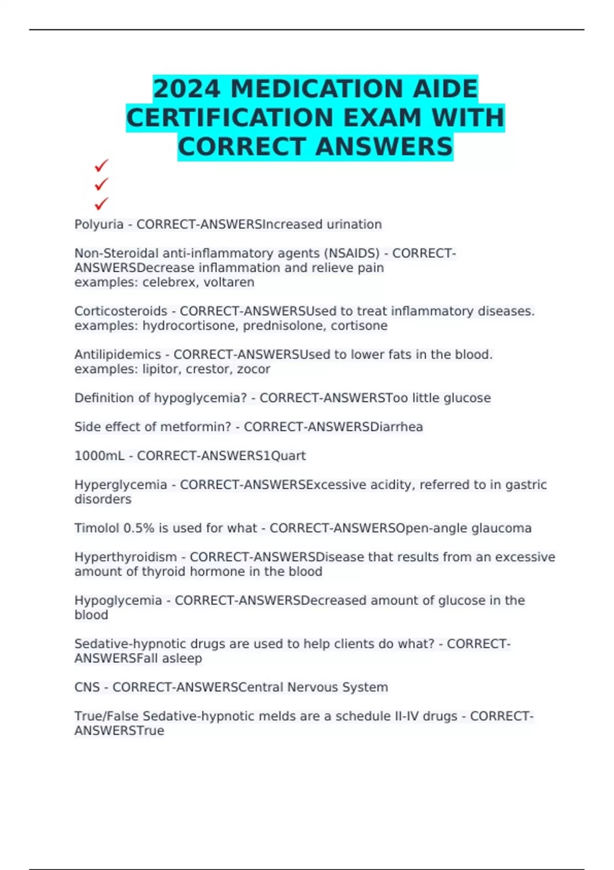 2024 MEDICATION AIDE CERTIFICATION EXAM WITH CORRECT ANSWERS